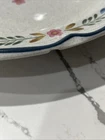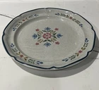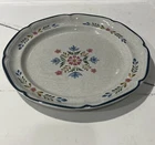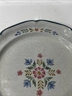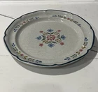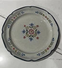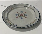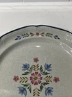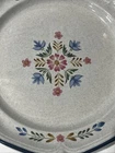 International " The American Patchwork" Collection Stoneware Plate SY-7565. Measures approximately 12” in diameter. Pre-owned; has a small chip to bottom side of plate as shown in photos. Has some signs of use to design on middle of plate. Reference photos for condition.