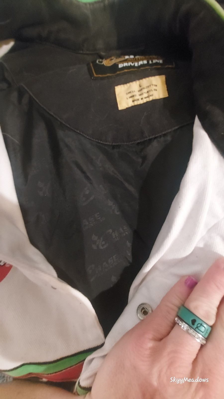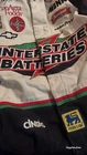 The Interstate Batteries VTG Collectable NASCAR Jacket is a stylish and officially licensed piece of fan apparel featuring the iconic green, white, and black colors of Bobby Labonte's Joe Gibbs Racing team. Made by Chase Authentics, this unisex adult sized jacket is perfect for fans of NASCAR and auto racing alike. With a classic design and high-quality materials, this jacket is a must-have for any collector or racing enthusiast looking to show their support for the sport and their favorite driver. Could use a light cleaning.