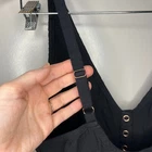This is the Free People Larissa Bodysuit in a size medium and black color. It features adjustable straps, a thong with adjustable closure, and a v-neckline with snap detail. Excellent Used Condition - No stains, holes, tears or other notable issues. Approximate Measurements: Length: 28" Chest: 30" Leg Opening: 26" If you have any other questions or would like any additional measurements, please ask!