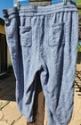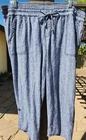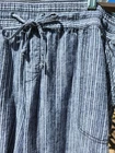 Intro Love The Fit Linen Blend Blue & White Stripe Crop Capri Pants, size 18W. These pants feature 2 pockets in the front and 2 pockets in the back with an elastic waistband with a drawstring tie. The fabric is similar to a heavy gauze. The bottom cuffs can be rolled up and fastened for a shorter pant. Lying flat and unstretched, this pant measures 20" through the waist, 24" across the hips and is 31.5" in length from the waistband and have a 19.5" inseam. The rise measures 12". Brand new, never worn, excellent condition. Laundered once. They have been stored in my smoke-free home. Feel free to email me with any questions you might have.