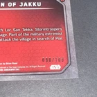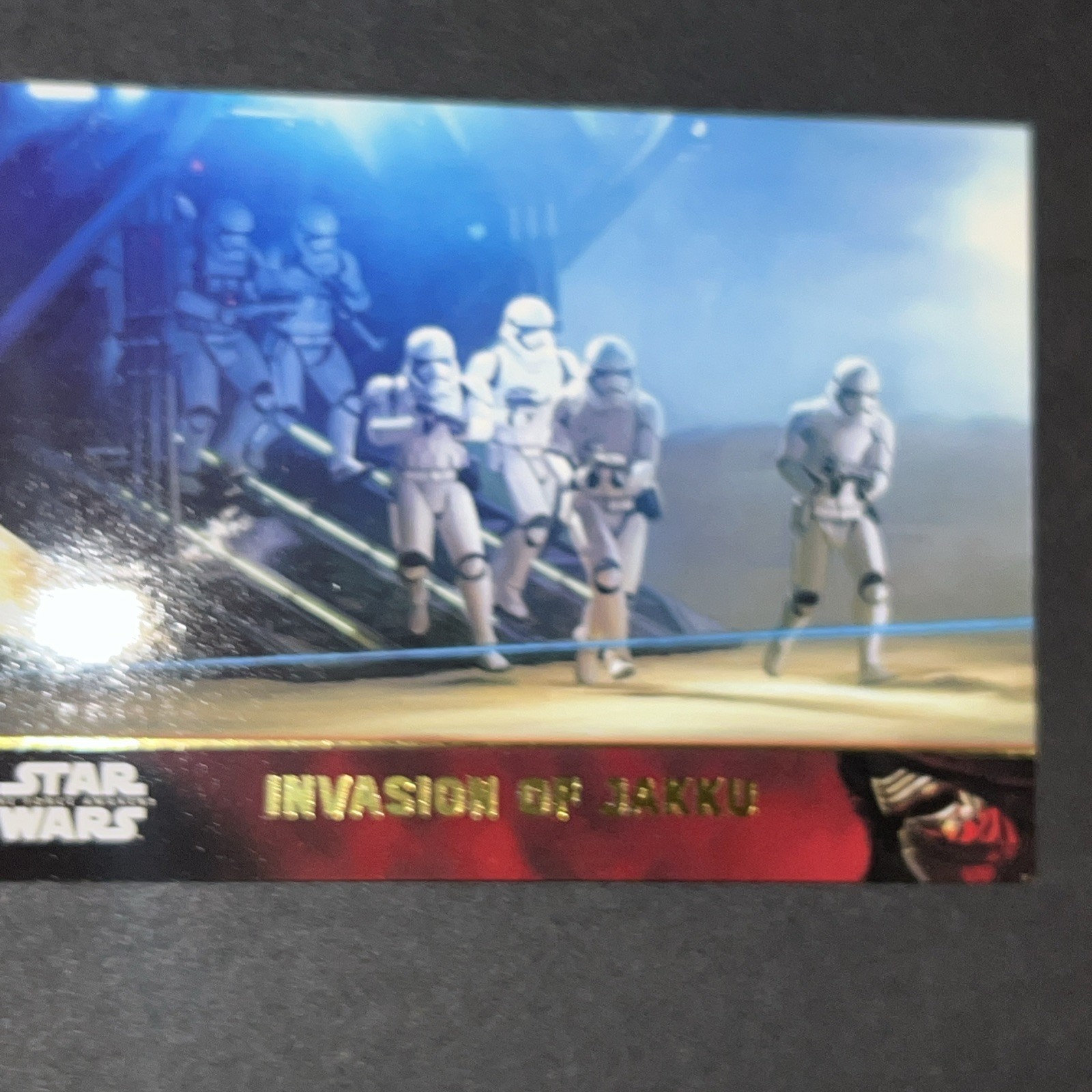 The product is a 2015 Topps Star Wars: The Force Awakens Series 1 trading card featuring the "Invasion of Jakku" storyline. This particular card is numbered 63 out of a limited print run of 100, making it a rare and collectible item for Star Wars fans. The card is an original licensed reprint by Topps, known for their high-quality non-sport trading cards. With its foil parallel variety and serial numbering, this card is a valuable addition to any Star Wars card collection.