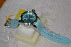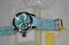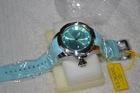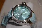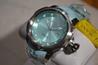 This Invicta Venom holds a Swiss Rondo 515 movement that drives HMS hands plus a date window in a 53.7mm silver case. The turquoise and silver face is surrounded by a silver uni-directional bezel and protected by a mineral crystal. With a screw down crown and screw down back, 3,300 feet water resistance is provided. A 22-200mm turquoise silicone band with silver clasp completes the look of this fine Sea Dragon. 630745491 MSRP $1,295. The NEW Invicta 54mm Venom Sea Dragon Swiss Watch is a sleek and stylish timepiece designed for men. Featuring a silver stainless steel case with a polished finish and a unidirectional rotating silver bezel, this watch is both durable and functional. The watch boasts a quartz movement and a water resistance of 3000 meters, making it suitable for any underwater adventures. With a double-locking fold-over clasp and a comfortable silicone turquoise band, this watch offers both style and security. The unique design and high-quality construction make it a standout choice for watch enthusiasts.