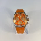 Elevate your timekeeping with the Invicta Lupah Watch, a Swiss-made timepiece that combines functionality with elegance. The watch boasts a polished gold and orange stainless steel case, complemented by a durable leather strap in a coordinating hue. Its classic round dial features a striking gold and orange color scheme, accented by bold Arabic numerals and luminous hands for visibility in low light. The Lupah is equipped with a reliable quartz movement, chronograph, and water resistance up to 330 feet, making it suitable for both everyday wear and aquatic adventures. Additional features include a flame fusion crystal, multi-dial display, and a sleek 45mm case size that fits comfortably on a range of wrists. Whether you're dressing up for a formal event or heading out on a casual outing, this versatile watch is designed to suit any occasion. 273