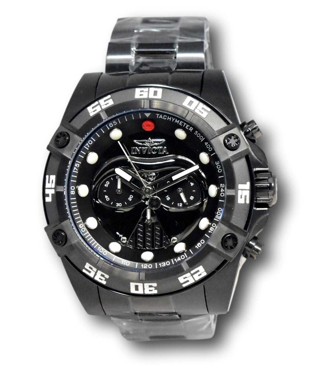 New - With Tags New and Unworn - Guaranteed Authentic - Includes Yellow Invicta Box and Warranty Card 100% Functional - This listing includes pictures of the actual watches for sale - Limited Edition out of 1977 Case size: 52mm wide or about 57mm wide including the crown Case Thickness: 19mm Weight: 11.3 ounces Items included: Includes Yellow Invicta Box and Warranty Card Max wrist size: 8.5 Inches Case and Dial Case Size: 52mm Case Material: Stainless Steel Bezel Material: Stainless Steel Bezel Color: Gunmetal, White Crown Type: Push Crystal Type: Flame Fusion Dial Material: Metal Movement Caliber: VD54 Function Type: Quartz Water Resistance Water Resistance: 100m Band Material: Stainless Steel Tone: Black Length: 210mm Size: 26mm Top Selling Disney Super Hero Star Wars New in Stcok TechnoMarine Contact Us Invicta Star Wars Darth Vader Men's 52mm Limited Edition Chronograph Watch 40079 New - With Tags New and Unworn - Guaranteed Authentic - Includes Yellow Invicta Box and Warranty Card 100% Functional - This listing includes pictures of the actual watches for sale - Limited Edition out of 1977 Case size: 52mm wide or about 57mm wide including the crown Case Thickness: 19mm Weight: 11.3 ounces Items included: Includes Yellow Invicta Box and Warranty Card Max wrist size: 8.5 Inches Case and Dial Case Size: 52mm Case Material: Stainless Steel Bezel Material: Stainless Steel Bezel Color: Gunmetal, White Crown Type: Push Crystal Type: Flame Fusion Dial Material: Metal Movement Caliber: VD54 Function Type: Quartz Water Resistance Water Resistance: 100m Band Material: Stainless Steel Tone: Black Length: 210mm Size: 26mm This item includes a 100% Money-Back Guarantee! If you're not completely satisfied with your purchase, just send it back in the same condition within 60 days and we will refund the full purchase price of the item. We'll even cover the return shipping! (Only applies to USA orders). Please Note: We do not cover water damage for watches. We do not test or verify manufacturer's water resistance claims. Please use your watch in water at your own risk. To receive free return shipping: Next to this item in your ebay purchase history, click on "Return this item." Please choose "Changed-mind" as the reason for the return. This will allow you to print a pre-paid return shipping label. - Klawk Watches - We have been in business for over 8 years, with more than 25,000 customers from around the world. We specialize in Invicta watches and have many models that can't be found anywhere else. We have some of the lowest prices - and you won't find better customer service. We try to provide the best customer service possible. We hand-inspect each watch and test them to make sure they are completely functional before shipping them out. We also include a no-hassle 60-day warranty on all of our watches (this warranty only covers defects in the watch movement). Our 60-day warranty does not cover any damage from water or moisture. Neither Klawkwatches nor any manufacturer covers water damage under warranty. Use your watch in water at your own risk. We're happy to help! If you have any questions, Please let us know and we will get back to you within 24 hours. Shipping Returns Shipping Shipping Returns Shipping Orders are shipped daily. We generally ship items within 24 hours of receiving payment. We offer standard, Prioirty, and overnight shipping services. You can upgrade your shipping speed at checkout for the difference in shipping costs. Unless a shipping upgrade is purchased, items will generally ship as a First Class Package, the normal arrival time is 3-5 business days starting the day after the item is shipped. We do all of our international shipping through the eBay global shipping program. We ship the item to the eBay global shipping center and they will ship the item to you. eBay determines the international shipping costs and import fees for the item based on the item weight and your location. International shipments can take between 2-4 weeks to arrive depending on your location. Shipping Returns Returns Shipping Returns Returns If you're not completely satisfied with your purchase, you are welcome to return it within 60 days for a full refund. We will generally cover the return shipping costs if you are not satisfied with your purchase. Next to the item in your purchase history, you can click on "More Options" and "Return this item". This will allow you to print a pre-paid return shipping label. For international orders and returns, please contact us to make return arrangements.