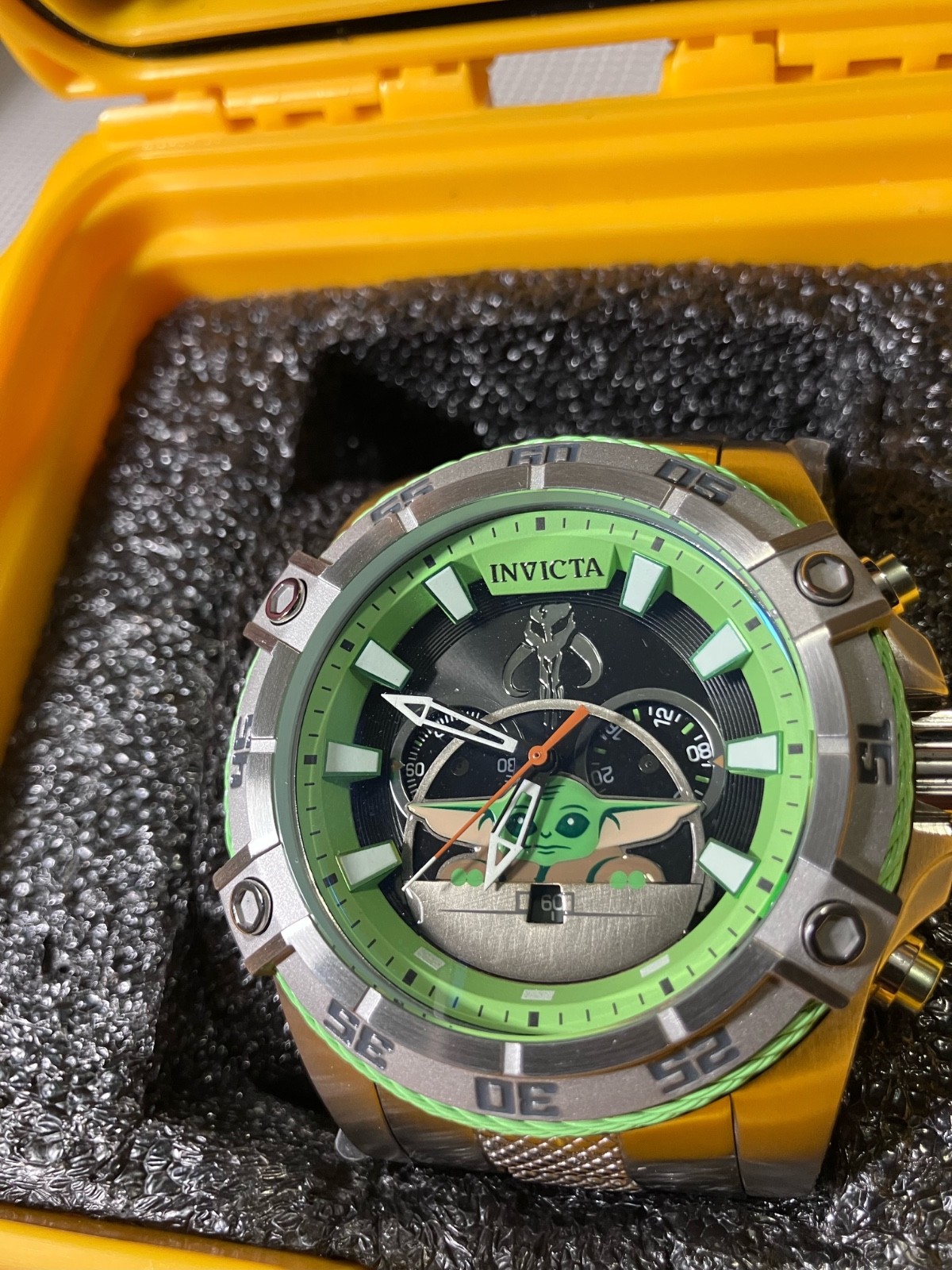 Invicta Star Wars The Child Men's Watch - 52mm, Steel (41220) WATCH IS NEW WITHOUT TAGS WORKS AS SHOULD PLEASE REFER TO PICTURES,AS IS EXACTLY THE SAME ITEM YOU WILL GET This beautiful Invicta Star Wars watch contains a precise Quartz movement in addition to a steel case. Its face displays a black, grey, light green, silver, metal dial protected by a highly resistant Flame Fusion Crystal. This timepiece is completed by a steel, stainless steel band and it offers water resistance of up to 100 m. Creating its own epic galaxy, the Star Wars collection is comprised of exclusive, limited edition timepieces for both men and women. Iconic characters from the films are integrated throughout the dials of each model. The legendary heritage of Star Wars teamed with the forward ingenuity of Invicta makes for the most collectible moment in this or any other system. The full force of Invicta time is now with you. From its founding in 1837 to the present day, innovative excellence has been at the core of each collection throughout the history of Invicta. Here at Invicta Stores we offer the largest selection of Invicta watches anywhere online. We pride ourselves on our superior customer service, our 3-year warranty and our commitment to offering the best value for the lowest prices.