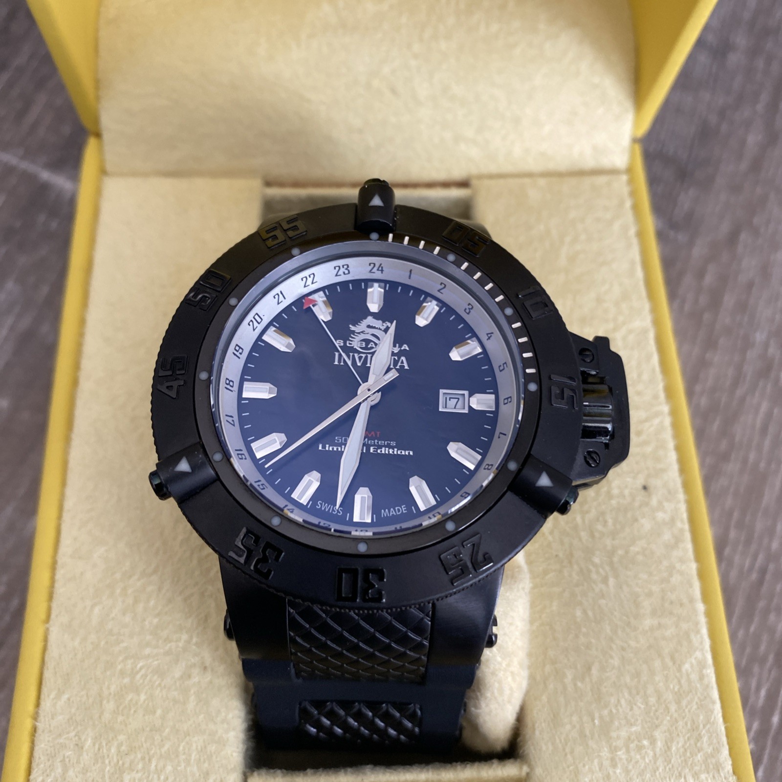 The Invicta Subaqua Noma III Men's GMT Watch 50mm 0736 is a stylish and functional timepiece designed for men. This Swiss-made watch features a black stainless steel case with a gloss finish, complemented by a black silicone two-piece strap. The watch boasts a 50mm case size, making it a bold statement piece perfect for adult men who appreciate quality craftsmanship. With water resistance up to 500m and a reliable quartz movement, this diver-style watch is both practical and stylish for everyday wear. Limited edition. 3411/3600
