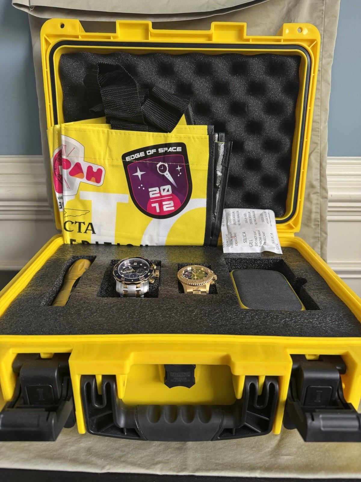 Invicta YELLOW PATCH Dive Collector case w/ 2 dive pro Invicta watches , 1 Speaker & 1 LED Flashlight! !!battery replacement required!!
