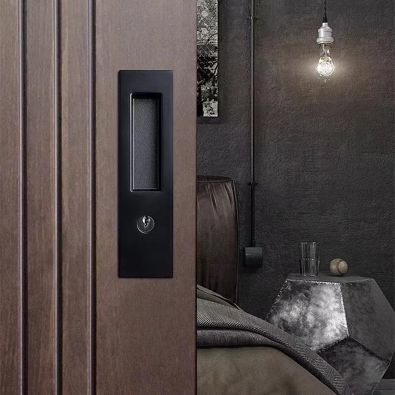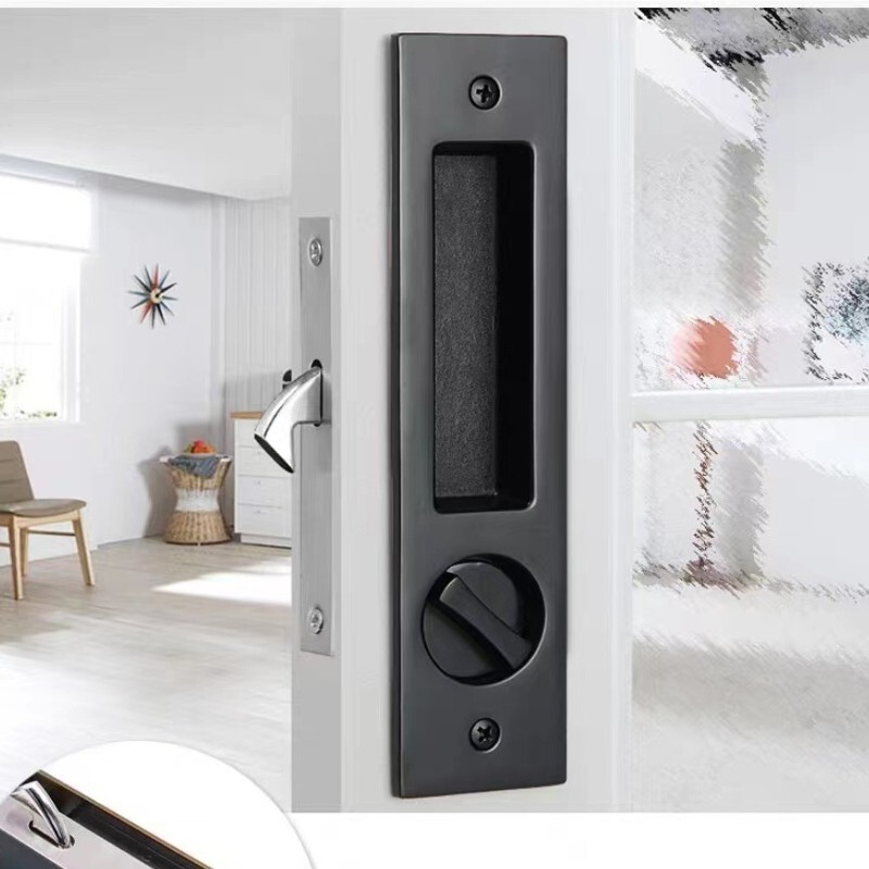 Invisible Recessed Square Pocket Door Lock with Gold Handle for Privacy