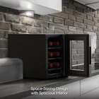 Keep your wine collection perfectly chilled with the Ionchill 6-Bottle Wine Cooler! This spacious, yet space-saving countertop cooler has a standard 6-bottle capacity and three removable chrome steel racks to keep your bottles stacked nicely and securely. Its smart cooling technology maintains balanced humidity levels and a constant internal temperature between 53-64°F, guaranteeing that your wine will always taste rich and fresh. Monitor and adjust your cooler’s internal temperature easily with its smart temperature controls and LED display. Quiet and compact, this sleek wine cooler is the ideal storage space for your red vintages. New Ionchill Wine Cooler Beverage Refrigerator with 6-bottle capacity LED smart display with Fahrenheit and Celsius temperature controls Soft blue LED interior lighting that showcases your bottles without damaging the wine Spacious interior with a space-saving exterior design at 17.66 x 9.76 x 14.43 in. Ideal temperature for red and white wine; fits most wine bottles (excluding champagne bottles) Specs: Input – 12V/5A; Power – 60W (Max); Capacity – 6 750mL wine bottles; Temperature Range – 53-65°F (12-18°C)