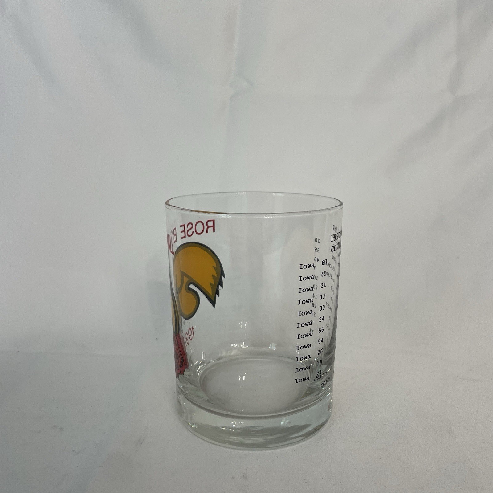 The product is a set of collectible high ball glasses featuring the Iowa Hawkeye football team in the 1991 Rose Bowl. The glasses are pink in color and make a unique and stylish addition to any fan's collection. These glasses are a great way for fans to commemorate the team's appearance in the Rose Bowl and show their support for the Iowa Hawkeyes in a fun and decorative way.