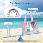 Eye-catching Dazzling Design - The iridescent beach bag is a real summer stunner. Its surface shifts colors with angles and pairs well with any bikini. The pearl handle small bag and the patterned shoulder straps with a silk scarf exudes elegance. It's a fashion gem that ensures you stand out on the beach. Carry All Your Beach Essentials - The 17 qt holographic beach bag is perfect for your beach accessories like phone, flip-flops, towel, sunscreen, soap, and water bottle; The pearl handle small bag keeps valuables safe. Attach it to the inner rope to prevent precious items from getting lost. Waterproof and Easy to Clean - Made of waterproof TPU, the beach bags waterproof sandproof keeps your stuff dry and sand-free; It's easy to clean — just rinse or wipe it to remain fresh and appealing look. Clear Design for Quick Access - The beach bag for women enables you to quickly locate items inside. The pearl handle small pouch safeguards your phone and allows you to check it without taking it out. Lightweight and Comfortable to Carry - The 15.5 x 5.7 x 11.4 inches iridescent beach tote that weighs only 1lb won't tire you on a beach stroll; Its padded, widened shoulder straps ease the load. Stylish and practical, it's an ideal gift for friends or family. Eye-catching Dazzling Design - The iridescent beach bag is a real summer stunner. Its surface shifts colors with angles and pairs well with any bikini. The pearl handle small bag and the patterned shoulder straps with a silk scarf exudes elegance. It's a fashion gem that ensures you stand out on the beach. Carry All Your Beach Essentials - The 17 qt holographic beach bag is perfect for your beach accessories like phone, flip-flops, towel, sunscreen, soap, and water bottle. The pearl handle small bag keeps valuables safe. Attach it to the inner rope to prevent precious items from getting lost. Waterproof and Easy to Clean - Made of waterproof TPU, the beach bags waterproof sandproof keeps your stuff dry and sand-free. It's easy to clean — just rinse or wipe it to remain fresh and appealing look. Clear Design for Quick Access - The beach bag for women enables you to quickly locate items inside. The pearl handle small pouch safeguards your phone and allows you to check it without taking it out. Lightweight and Comfortable to Carry - The 15.5 x 5.7 x 11.4 inches iridescent beach tote that weighs only 1lb won't tire you on a beach stroll. Its padded, widened shoulder straps ease the load. Stylish and practical, it's an ideal gift for friends or family.