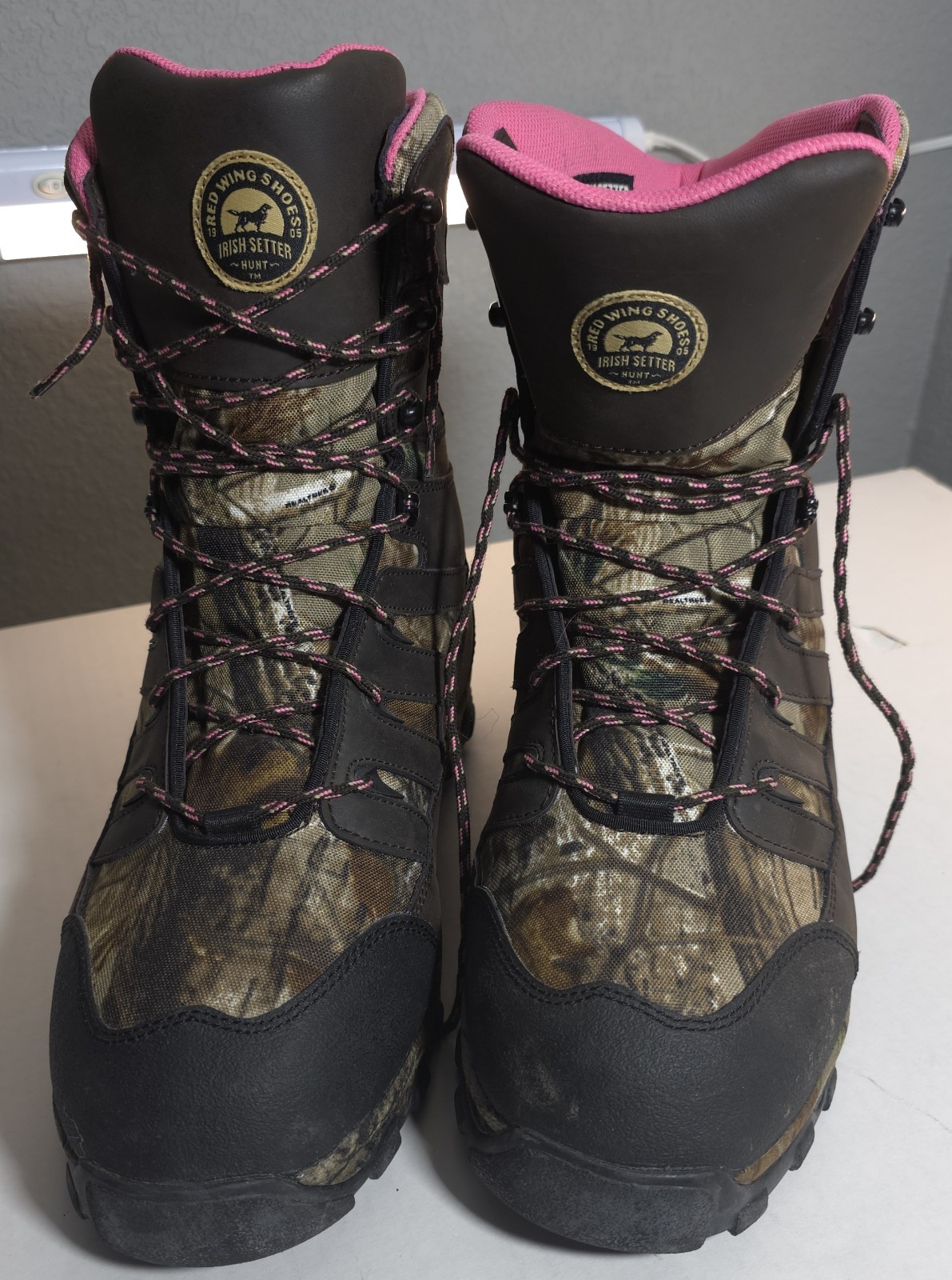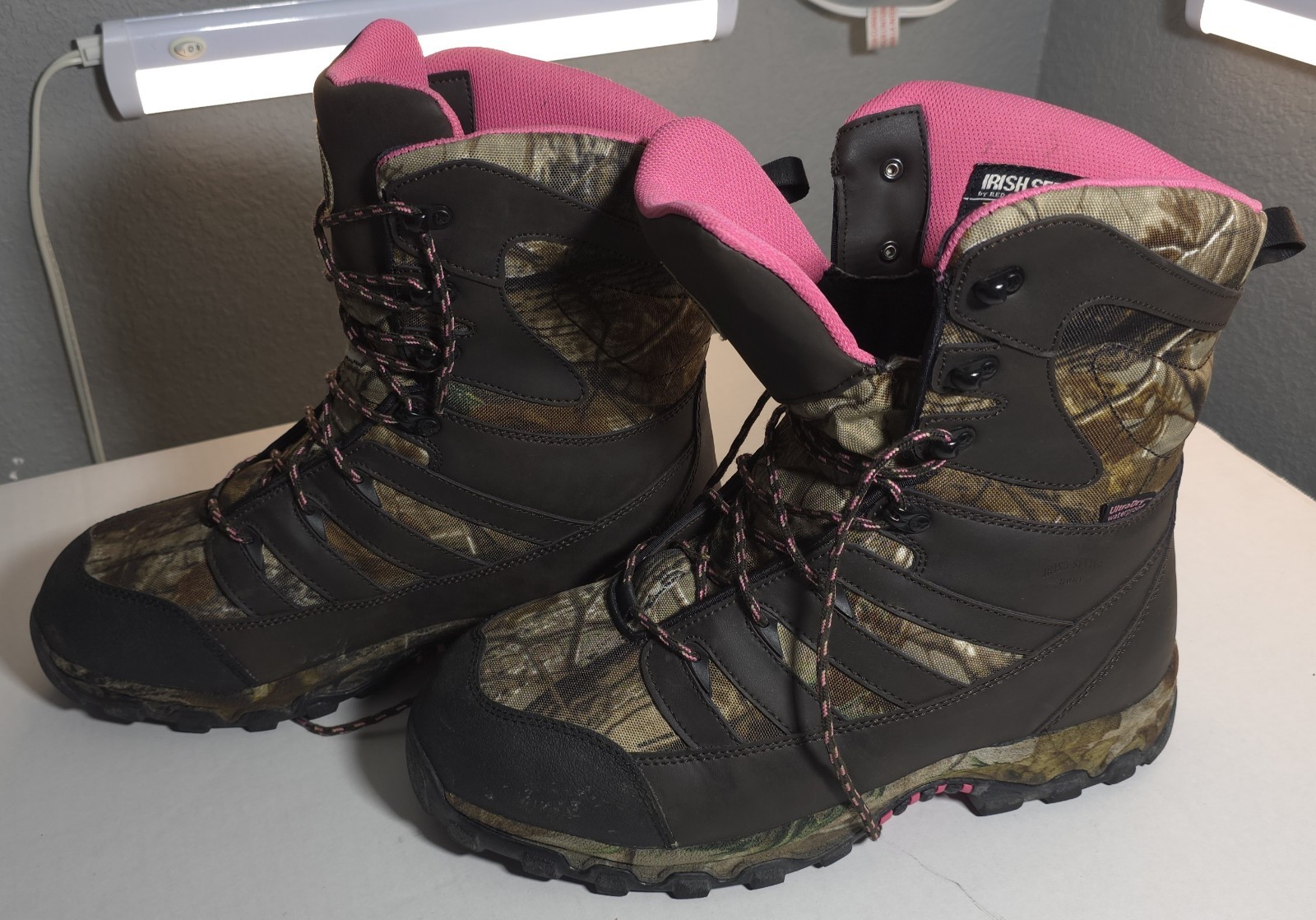 In lightly used condition. Overall in great shape. See pictures. These Irish Setter Red Wing boots are specifically designed for women in size 10.5 M, featuring a round toe and pull-on closure for easy wear. The boots are insulated and waterproof, making them perfect for hunting in the winter, fall, and spring seasons. With a camouflage pattern, leather upper, and rubber outsole, these boots offer both style and functionality for outdoor activities. The flat heel and ankle shaft style provide comfort and versatility, while the fabric lining and blended fabric upper ensure durability. Perfect for the active woman who values both fashion and performance in her footwear.