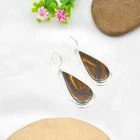 Iron Tiger Eye Gemstone Earrings 925 Sterling Silver Handmade Jewelry Woman Gift