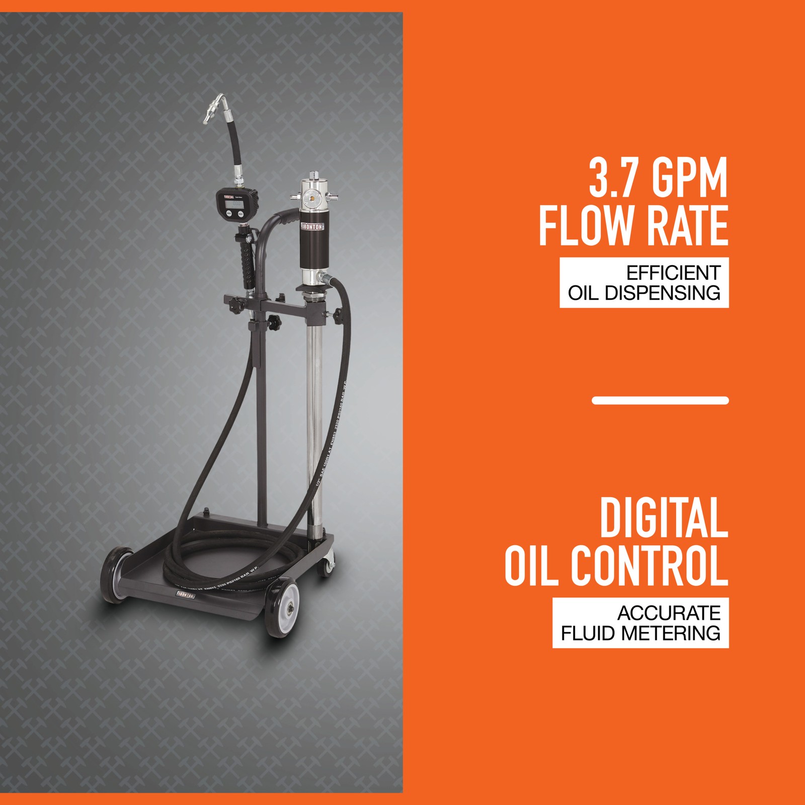 The Ironton Air-Operated 5:1 Oil Pump Kit with Cart is a mobile oil dispensing unit for 13–16-gallon drums. It includes a digital oil control valve and meter, a discharge hose, and a sturdy trolley for easy mobility. Designed for dispensing medium- and high-viscosity oils up to SAE 240, this pump operates at 70–115 PSI with a flow rate of 3.7 GPM, making it ideal for mobile installations or fixed systems at long distances. Ironton Air-Operated 5:1 Oil Pump Kit with Cart, 3.7 GPM, 13–16-Gal. Drum Capacity Northern Tool Item# 58313 Item Weight: 45.0000 lb(s) Manufacturer: Ironton MPN: 1700322 Warranty: 3 month limited warranty. Product Summary: The Ironton Air-Operated 5:1 Oil Pump Kit with Cart is a mobile oil dispensing unit for 13–16-gallon drums. It includes a digital oil control valve and meter, a discharge hose, and a sturdy trolley for easy mobility. Designed for dispensing medium- and high-viscosity oils up to SAE 240, this pump operates at 70–115 PSI with a flow rate of 3.7 GPM, making it ideal for mobile installations or fixed systems at long distances. Payment Instructions You can pay us securely through eBay. All orders will contain an invoice/receipt. IMPORTANT: We will not honor requests to remove invoices or receipts from packages. No exceptions ON U.S. PURCHASES, Northern currently collects sales tax on purchases shipped to all states except: Alaska, Delaware, Montana, New Hampshire, Oregon Shipping Information This product will be shipped by Parcel. Parcel Shipping: Ground Shipped items must be sent to a physical address and cannot be sent to PO boxes. If a PO box address is submitted without a physical address it may delay your order. We cannot ship to APO/FPO boxes. Please note that we do not ship items on weekends or holidays. More information on shipping and handling times can be found on our Store Policies Page . Customer Care We want you to be satisfied with your purchase; please notify us by email if you have any concerns. Before you send an email message, please check our Help Section . We may already have an answer to your question! We are available to answer your email questions Monday through Friday from 8am - 3pm CST, excluding holidays. If your email is sent on a weekend, holiday or after business hours, we will respond to you on the following business day. Returns may be accepted on most items within 30 days of receipt of the item. All returns require authorization from us. Some returns are charged a 15% restocking fee. Please click the Shipping and Payments tab on this item for specific return information and full details. About Our Products Product Warranty: 3 month limited warranty Warranty information and contact details can be found on our Store Policies Page. We are working hard to ensure that the information provided on the eBay product advertisements is accurate and up-to-date. We reserve the right to correct ad errors and/or omissions. Pricing and availability is subject to change without notice. Yes Returns + Shipping FAQ Sales Tax Info Newsletter Sign-Up Pressure Washers Generators Auto Repair Air Tools Fuel ALL Ironton Air-Operated 5:1 Oil Pump Kit with Cart, 3.7 GPM, 13–16-Gal. Drum Capacity Northern Tool Item# 58313 Item Weight: 45.0000 lb(s) Manufacturer: Ironton MPN: 1700322 Warranty: 3 month limited warranty. Product Summary: The Ironton Air-Operated 5:1 Oil Pump Kit with Cart is a mobile oil dispensing unit for 13–16-gallon drums. It includes a digital oil control valve and meter, a discharge hose, and a sturdy trolley for easy mobility. Designed for dispensing medium- and high-viscosity oils up to SAE 240, this pump operates at 70–115 PSI with a flow rate of 3.7 GPM, making it ideal for mobile installations or fixed systems at long distances. Payment Instructions You can pay us securely through eBay. All orders will contain an invoice/receipt. IMPORTANT: We will not honor requests to remove invoices or receipts from packages. No exceptions ON U.S. PURCHASES, Northern currently collects sales tax on purchases shipped to all states except: Alaska, Delaware, Montana, New Hampshire, Oregon Shipping Information This product will be shipped by Parcel. Parcel Shipping: Ground Shipped items must be sent to a physical address and cannot be sent to PO boxes. If a PO box address is submitted without a physical address it may delay your order. We cannot ship to APO/FPO boxes. Please note that we do not ship items on weekends or holidays. More information on shipping and handling times can be found on our Store Policies Page . Customer Care We want you to be satisfied with your purchase; please notify us by email if you have any concerns. Before you send an email message, please check our Help Section . We may already have an answer to your question! We are available to answer your email questions Monday through Friday from 8 - 3 CST, excluding holidays. If your email is sent on a weekend, holiday or after business hours, we will respond to you on the following business day. Returns may be accepted on most items within 30 days of receipt of the item. All returns require authorization from us. Some returns are charged a 15% restocking fee. Please click the Shipping and Payments tab on this item for specific return information and full details. About Our Products Product Warranty: 3 month limited warranty Warranty information and contact details can be found on our Store Policies Page. We are working hard to ensure that the information provided on the eBay product advertisements is accurate and up-to-date. We reserve the right to correct ad errors and/or omissions. Pricing and availability is subject to change without notice. Yes