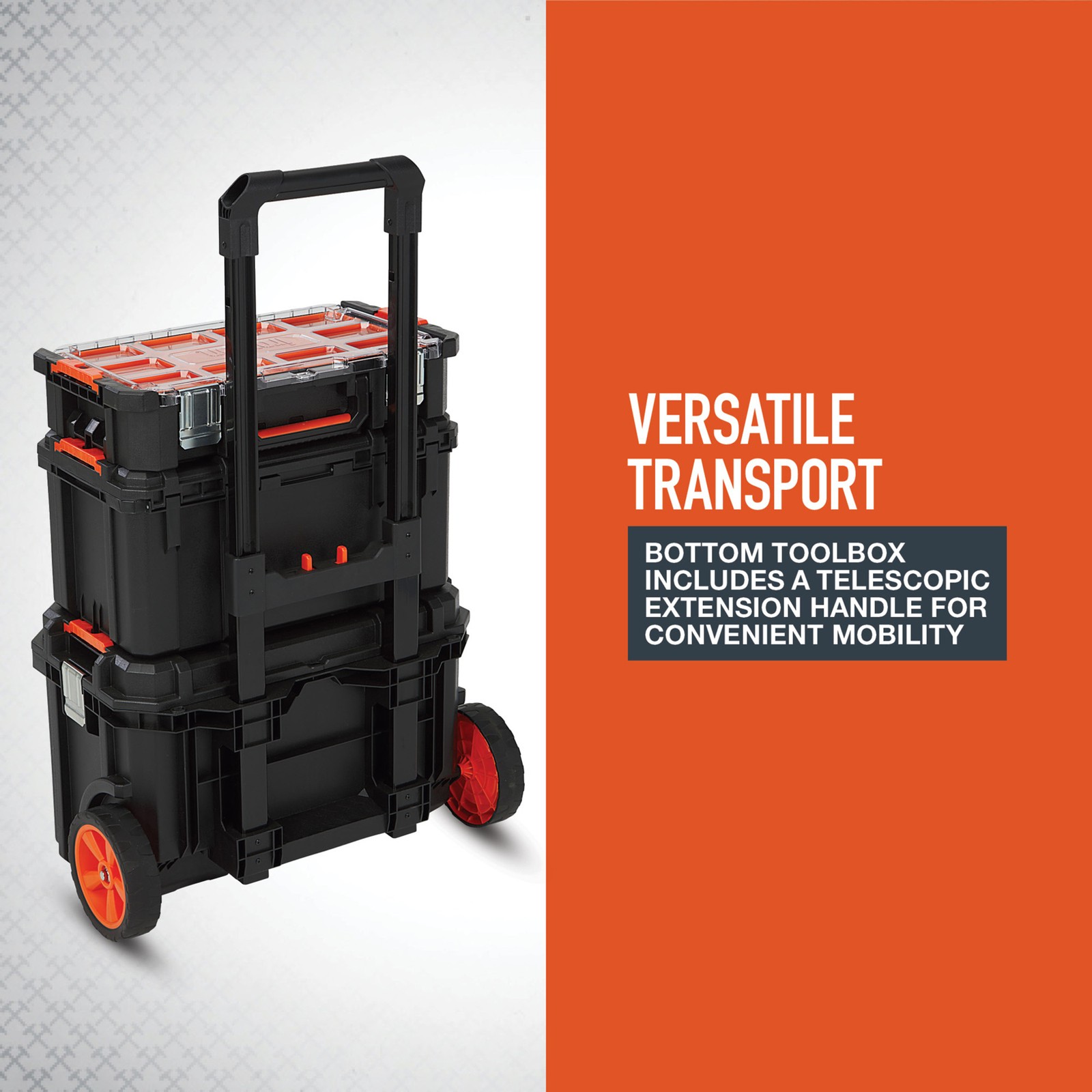 The Ironton 3-in-1 Modular Rolling Toolbox System is designed for security and stability. Metal latches and plastic handles on all boxes secure the contents and make them easy to carry individually. Each box features side latches that can be interlocked to create a storage solution for any need. The lower cart with telescopic handle and 7in. x 2in. wheels is great to move your tools from place to place. The middle toolbox offers a lift-out carry tray option, and the upper organizer keeps smaller items in perfect order. Combine all storage units with very little effort into 1 system or customize according to your requirements—the choice is yours. All 3 boxes are included in the 3-in-1 Modular Rolling Toolbox System. The top box includes 10 removable storage bins Ironton Light-Duty Modular Rolling Toolbox System Northern Tool Item# 5984598 Item Weight: 29.6000 lb(s) Manufacturer: MPN: Warranty: Warrnty Limitation: Any incorrect application. Product Summary: The Ironton 3-in-1 Modular Rolling Toolbox System is designed for security and stability. Metal latches and plastic handles on all boxes secure the contents and make them easy to carry individually. Each box features side latches that can be interlocked to create a storage solution for any need. The lower cart with telescopic handle and 7in. x 2in. wheels is great to move your tools from place to place. The middle toolbox offers a lift-out carry tray option, and the upper organizer keeps smaller items in perfect order. Combine all storage units with very little effort into 1 system or customize according to your requirements—the choice is yours. All 3 boxes are included in the 3-in-1 Modular Rolling Toolbox System. The top box includes 10 removable storage bins measuring 20-1/8in. x 11in. x 4-1/2in. The lift-out carry tray in the middle box measures 20-1/8in. x 11-1/8in. x 10-1/4in. The mobile bottom toolbox includes telescopic extension handles and 2 rubber-coated wheels. The bottom toolbox with telescopic handle measures 24-3/4in.L x 14-1/2in.W x 38-5/8in.H. Payment Instructions You can pay us securely through eBay. All orders will contain an invoice/receipt. IMPORTANT: We will not honor requests to remove invoices or receipts from packages. No exceptions ON U.S. PURCHASES, Northern currently collects sales tax on purchases shipped to all states except: Alaska, Delaware, Montana, New Hampshire, Oregon Shipping Information This product will be shipped by Parcel. Parcel Shipping: Ground shipped items must be sent to a physical address and cannot be sent to a PO box. If a PO box address is submitted without a physical address, it may delay your order. We cannot ship to APO/FPO boxes. Please note that we do not ship items on weekends or holidays. More information on shipping and handling times can be found on our Store Policies Page . Customer Care We want you to be satisfied with your purchase; please notify us by email if you have any concerns. Before you send an email message, please check our Help Section . We may already have an answer to your question! We are available to answer your email questions Monday through Friday from 8am - 3pm CST, excluding holidays. If your email is sent on a weekend, holiday or after business hours, we will respond to you on the following business day. Returns may be accepted on most items within 30 days of receipt of the item. All returns require authorization from us. Some returns are charged a 15% restocking fee. Please click the Shipping and Payments tab on this item for specific return information and full details. About Our Products Product Warranty: Warrnty Limitation: Any incorrect application Warranty information and contact details can be found on our Store Policies Page. We are working hard to ensure that the information provided on the eBay product advertisements is accurate and up-to-date. We reserve the right to correct ad errors and/or omissions. Pricing and availability is subject to change without notice. No