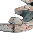 Irregular Choice Striped Floral Strappy Platform Heels Unicorn Bottoms Size 8 In excellent condition Irregular Choice Striped Floral Strappy Platform Heels Unicorn Bottoms Size 8 Women's. Features inspired 50s style platform heels by Irregular Choice, chucky heel with leather perforated diamond shape, peep toe, 3 straps with white leather buttons, silver toe beds, perforated white leather diamond print platform, square peep toe, pink and white striped floral print, Tiffany Blue bottoms adorned with unicorns, pin up girl style, cosplay, feminine heels, unique high heels. Measurements platform height .75" heel height 3.5" Fabric unknown This is a pre-owned item that may show signs of wear. In excellent condition, light black mark on 1 button and on back.