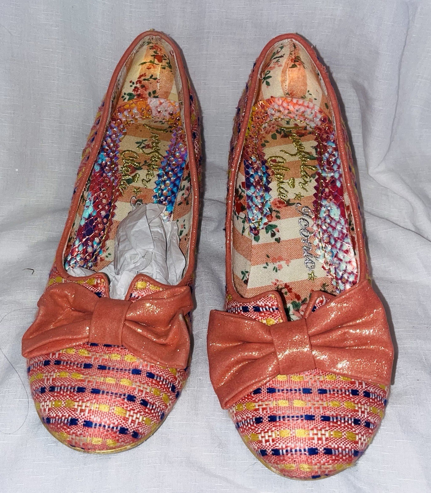A stunning, delicate pair from the retired Irregular Choice brand. These are ideal for special occasions or adding a pop of patterned texture to an outfit.