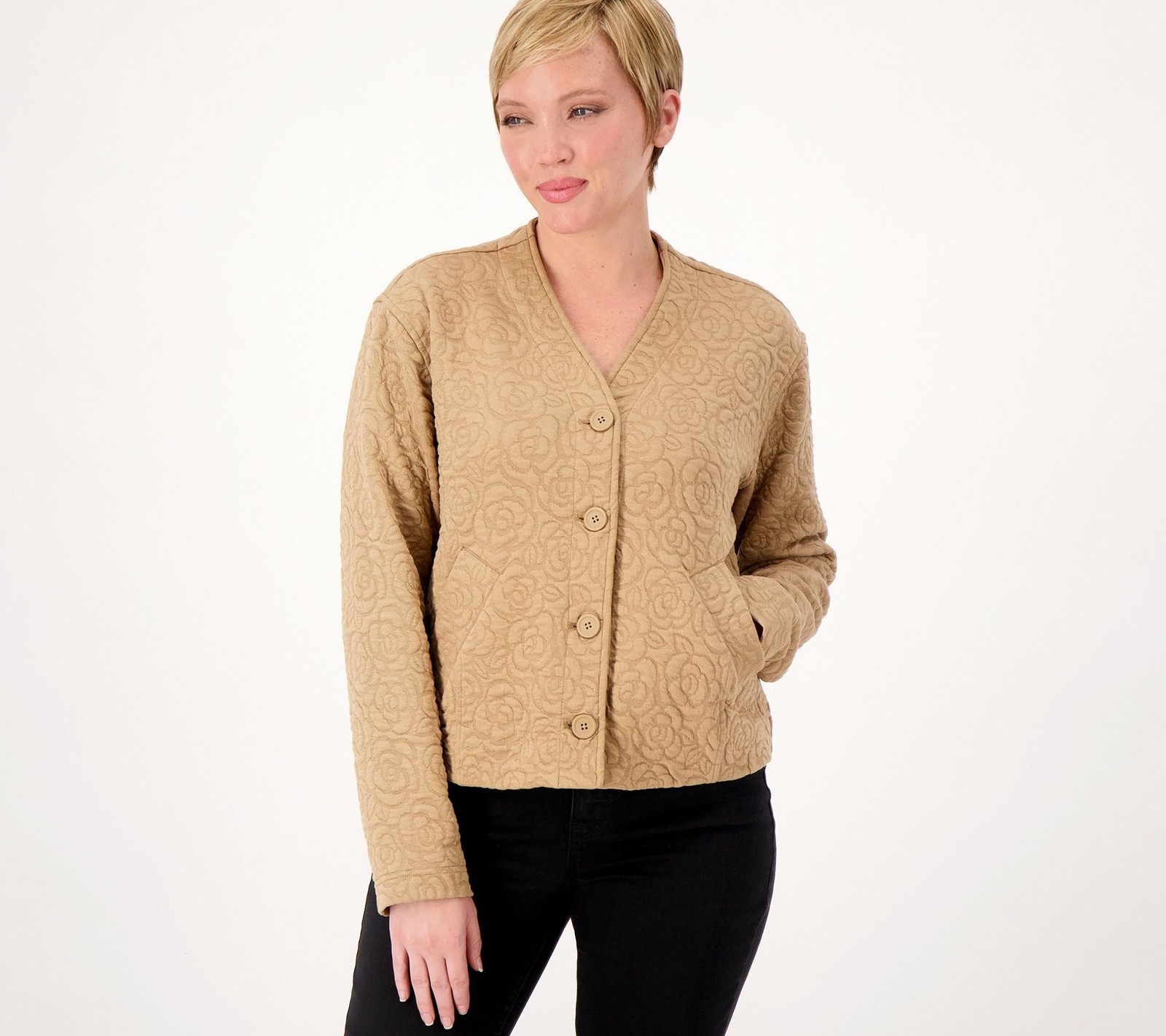 Condition: This item is brand new without tags. Description: Fabrication: knit Features: open front, fully lined with tricot, Y-neckline, button-front placket, wide functional welt pocket, drop shoulders with long sleeves Fit: relaxed fit; generously cut with maximum wearing ease Length: missy length 22-1/2" to 24-5/8"; plus length 25" to 28-1/2" Content: body 55% cotton/42% polyester/3% spandex; lining 100% polyester Care: machine wash, tumble dry Imported Retail Price: 100.00 Brand: Isaac Mizrahi Live! SizeType: Plus Size Size: 2X Visit Our Store Shop by Department Store Home Apparel Athletic Apparel Coats & Jackets Dresses Hosiery & Socks Intimates & Sleepwear Jeans Jumpsuits & Rompers Leggings Pants Shorts Skirts Suits & Blazers Sweaters Sweats & Hoodies Swimwear T-Shirts Tops & Blouses Vests Shoes Athletic Boots Flats & Oxfords Heels Occupational Sandals & Flips Flops Slippers Handbags & Accessories Handbags Accessories Men's Apparel Shoes Accessories Health & Beauty Home & Garden 100% guaranteed authentic Isaac Mizrahi Live! Women's Plus Sz Jacket 2X Button Front Knit Brown A567665 ADD TO WATCHLIST | ADD MODAVENUE TO MY FAV SELLERS IMPORTANT FAQs Are accessories such as belts included? Some items which are designed with belts or other accessories may not include those pieces. If you do not see the accessory in the photo, it is not included. What are the measurements of this item? Because sizing varies by designer, please refer to the designer's website for sizing guidelines. We apologize for the inconvenience, but due to the overwhelming number of requests we receive to do this, AND the large number of items we have for sale, we cannot provide any additional measurements. What if an item doesn't fit or I just don't want it? In these cases, we will be happy to issue you a refund if the item is in the same condition as originally shipped. Any tags or labels need to remain attached. For the quickest processing of your return, please contact us FIRST. To view more FAQs, visit our About Us page Item Details Shipping Easy Returns Stay snug (and stylish) in this textured jacquard knit jacket -- and put the finishing touch on your mock-neck top and pants look. From Isaac Mizrahi Live! . Condition: This item is brand new without tags. Description: Fabrication: knit Features: open front, fully lined with tricot, Y-neckline, button-front placket, wide functional welt pocket, drop shoulders with long sleeves Fit: relaxed fit; generously cut with maximum wearing ease Length: missy length 22-1/2" to 24-5/8"; plus length 25" to 28-1/2" Content: body 55% cotton/42% polyester/3% spandex; lining 100% polyester Care: machine wash, tumble dry Imported Retail Price: 100.00 Brand: Isaac Mizrahi Live! SizeType: Plus Size Size: 2X Style/Model: A567665 SKU: A5676653K8301 SHIPPING METHODS US orders are shipped via USPS. SHIPPING & HANDLING TIME Total U.S. shipping time (handling and delivery) can take up to 7 business days. International shipping time can take up to 17 business days. Handling Time: Orders ship 1 business day after payment is received. You will receive a shipment notification email on the day your order ships. OUR 100% GUARANTEE If you receive an item which is not in the condition described, we will promptly provide you a postage-paid return label and issue you a complete refund upon its return. If your item doesn't fit or you don't want it, you can return it for a refund. Please contact us if you have any questions as we will be glad to assist. Returns are accepted up to 30 days after you received the item. Refunds are issued within 3-4 business days after we receive the item. We do not facilitate exchanges on eBay. ADD ITEM TO MY WATCHLIST | ADD TO MY FAV SELLERS IMPORTANT FAQs Are accessories such as belts included? Some items which are designed with belts or other accessories may not include those pieces. If you do not see the accessory in the photo, it is not included. What are the measurements of this item? Because sizing varies by designer, please refer to the designer's website for sizing guidelines. We apologize for the inconvenience, but due to the overwhelming number of requests we receive to do this, AND the large number of items we have for sale, we cannot provide any additional measurements. What if an item doesn't fit or I just don't want it? In these cases, we will be happy to issue you a refund if the item is in the same condition as originally shipped. Any tags or labels need to remain attached. You MUST CONTACT US before returning an item. View More FAQs About Us NEWSLETTER SIGN UP FAQs Add To Favorites Copyright © 2024 Wardrobe Technologies, Inc. All rights reserved.