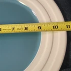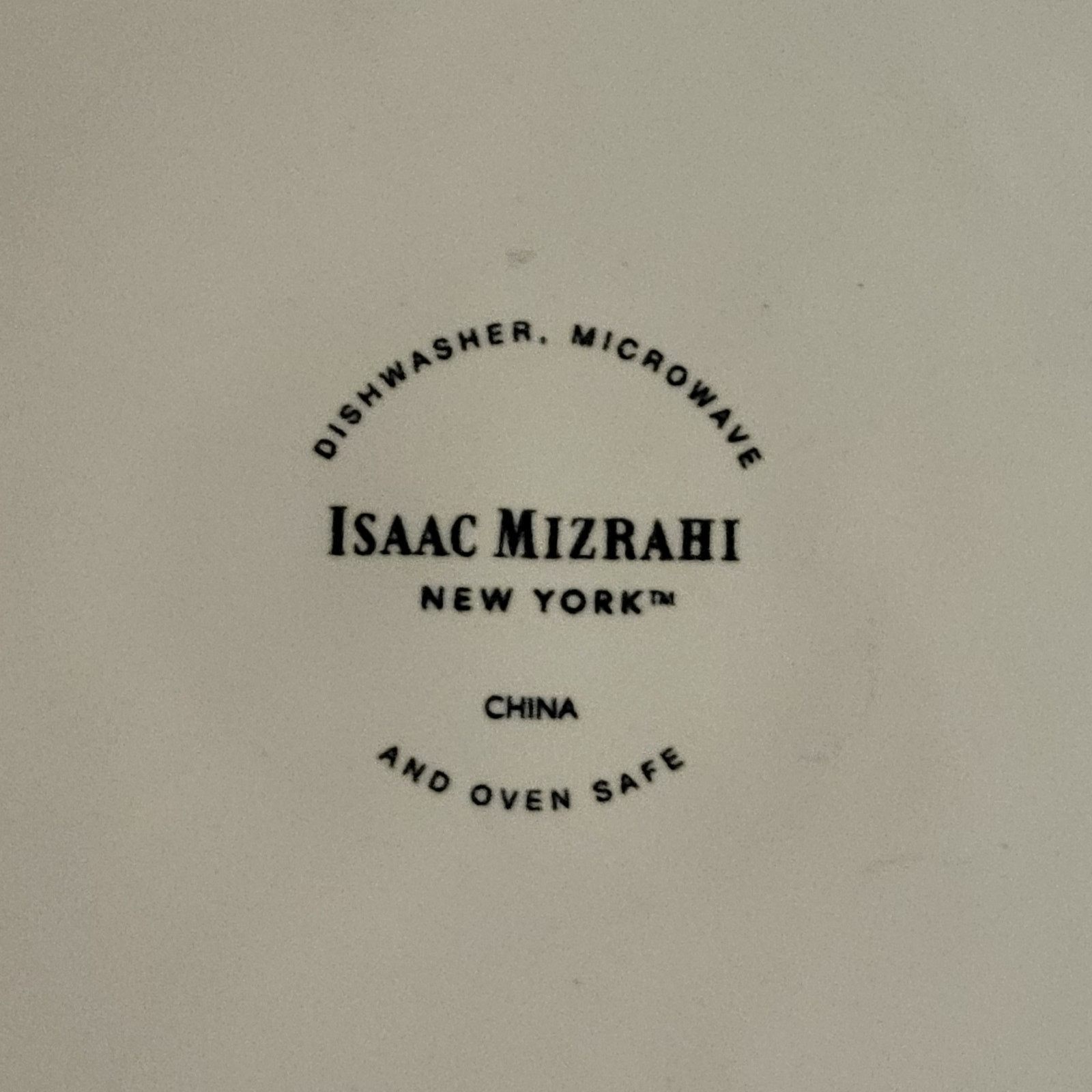 Isaac Mizrahi NY Dinner Plates Caribbean Blue Embossed White Stoneware Discontinued 10 1/2 Inches Microwave, oven and dishwasher safe Set of 2 These plates in good condition with no crazing or cracks. There is a small flee bite on the rim. See photos. As a pre-owned item there maybe a slight amount of wear or utensil marks.