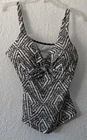 Island Escape Tankini White W Black Geo Design Underwire Padded Adjustable.... Condition is Pre-owned. Shipped with USPS Ground Advantage.