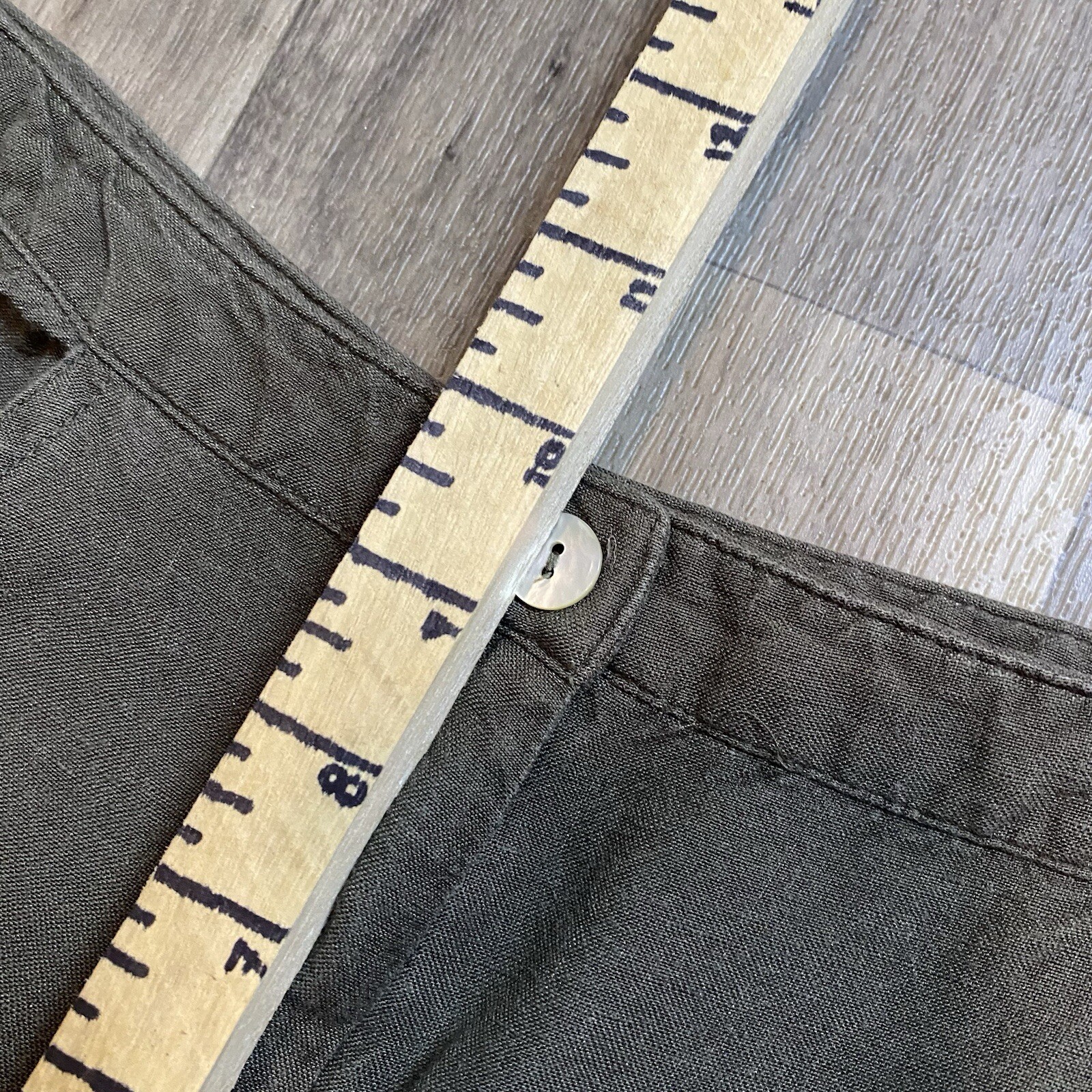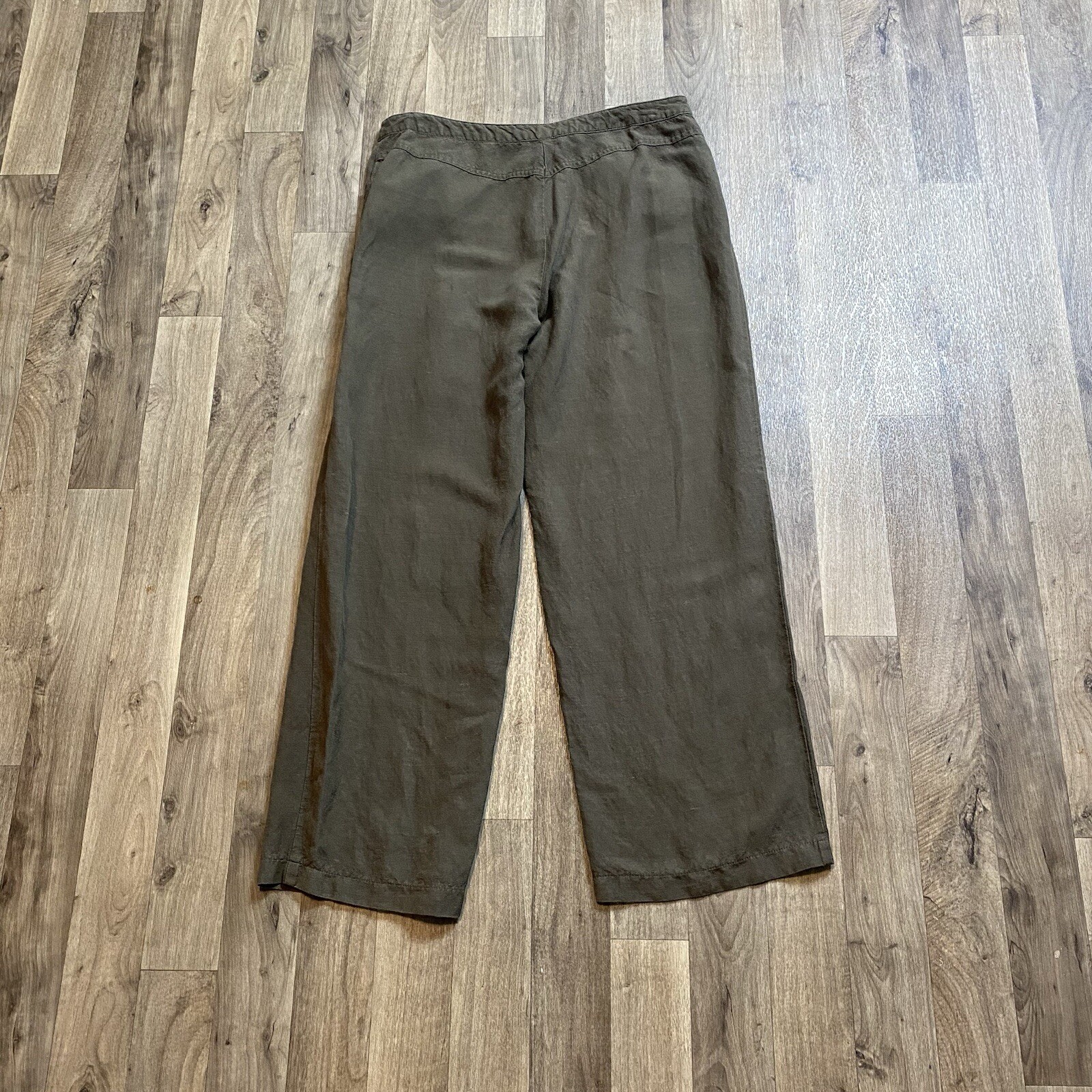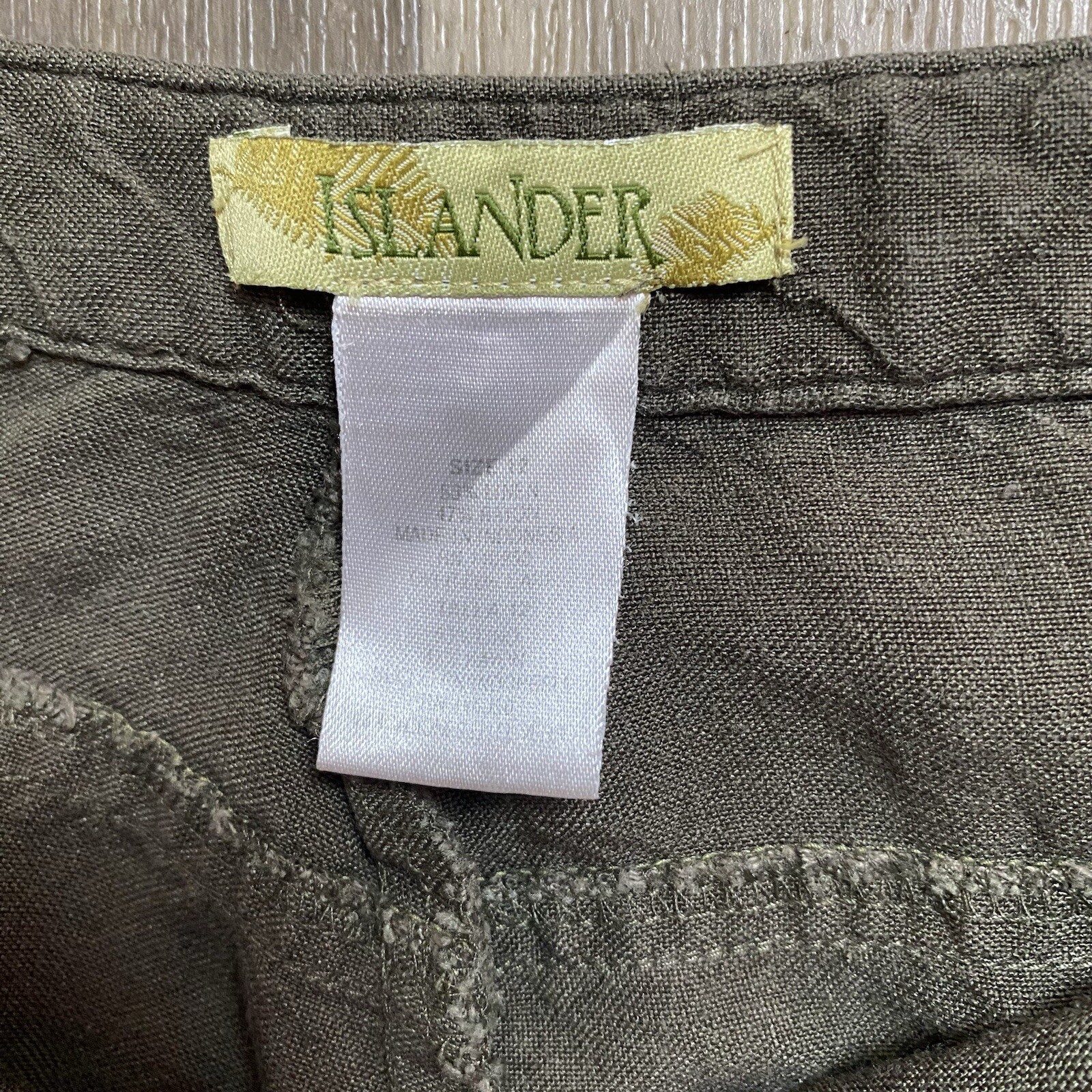 Islander Women’s Size 12 Dark green trousers Linen Rayon Blend Wide leg cropped pants Great condition Waist Across: 15 inches Rise: 10 inches Inseam: 27 inches