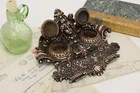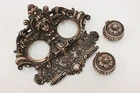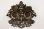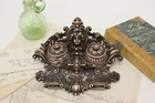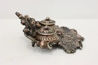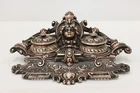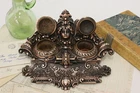 Item # 52722 This gorgeous Italian double inkwell would be perfect for a writer's desk to pen the next great novel or play. Italian antique 1900s inkwell with a queen bust & cherubs plus pen holder Cast iron with a copper finish Minor losses to finish & corrosion, inkwells are rusted inside - see photos Size is 11" wide, 9" deep and 4" tall. Please view 13 photos at full screen size for best detail. Related items in photos are sold separately. We carefully pack and ship Fed Ex or USPS depending on size and destination. Shipping charge added at check out. Discount rates available to many areas in WI, IL, MN as well as FREE Store Pick Up in Kaukauna, WI. Contact us for more information. Store Information Payment methods The Harp Gallery 2101 Progress Way Kaukauna, WI 54130 Shipping & Handling Buyer pays shipping. Contact us to request independent shipping quotes on Freight Items. Also visit our eBay store for shipping info . Sales tax 5.5% sales tax applicable for WI buyers and customer pickup in Kaukauna, WI. Customer Service & Return Policy We are only happy with satisfied customers! Please reach out to us with any concerns or questions. Return policy: 15% restocking fee/buyer pays return shipping.