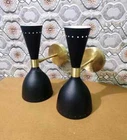 Wall Sconce Diabolo Pair of Modern Italian Wall Lights Marigold Wall Fixture Light . This is Stilnovo Style light fixture is made with UL approved parts. It has 1 arms/lights and measures 5" in diameter without light bulbs. It uses standard chandelabra socket light bulbs. We recommend 15W to 40W max. Light bulbs are not included. Ceiling canopy can be adjustable at different angles so you can hang this We hand craft all of our light fixtures. This chandelier has been made with brass material. minor variations in finish are an inherent characteristic of such material and add to the beauty and uniqueness of the product. Product Specifications: - Premium quality mid-century Wall Fixture. - Made of pure brass brass shiny finish . other brass finishes are available at request. - Measurements is :L x 10.5 inch B x 5'' inch H x 8'' inch Ceiling Wall canopy To Light Socket Edge - Brushed brass - Wall Fixture used standard candelabra E-12/E-14 light bulbs. (not included) - Canopy 4''inch - Reproduction Materials: - Brass, Iron - All Components are UL approved. Bulb Type: - Requires Four (4) 15 watt bulb type A (not included) - E-12/E-14 socket Rated with 125 voltage, 75 watt max. - 7 watt to 15 watt bulbs are recommended. - Incandescent Bulbs, Energy Saying, LED Bulbs.