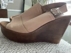 Barbara Barbieri Tan Leather Peep Toe Wedge Made In Italy size 8