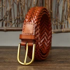 Italian Top Grain Cowhide Belts Handmade Woven Genuine Leather Pin Buckle Belt