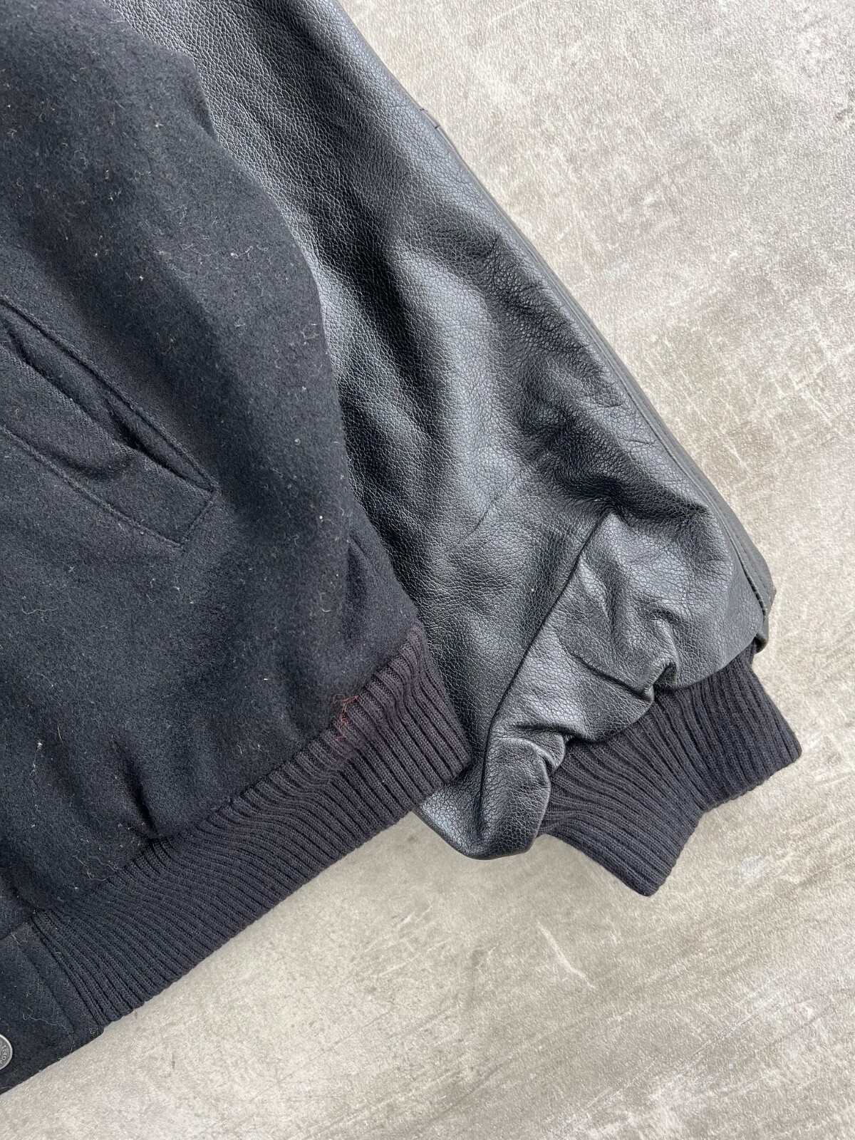 CIRCA 1990S A LETTER JACKET IS A BASEBALL-STYLED JACKET TRADITIONALLY WORN BY HIGH SCHOOL AND COLLEGE STUDENTS IN THE UNITED STATES TO REPRESENT SCHOOL AND TEAM PRIDE AS WELL AS TO DISPLAY PERSONAL AWARDS EARNED IN ATHLETICS, ACADEMICS OR ACTIVITIES. LETTER JACKETS ARE ALSO KNOWN AS "VARSITY JACKETS" AND "BASEBALL JACKETS" IN REFERENCE TO THEIR AMERICAN ORIGINS. GOOD VINTAGE CONDITIONS: SOME STAINS/SIGNS OF WEAR, COMMON ON THESE KIND OF VINTAGE PIECES SIZE SMALL - FIT S/M CHECK MEASUREMENTS PIT TO PIT 62 CM PIT TO CUFF 53 CM BACK LENGTH 67 CM