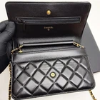 Item CHANEL Matelass Chain Wallet Shoulder Bag Black Lambskin Gold Hardware A33