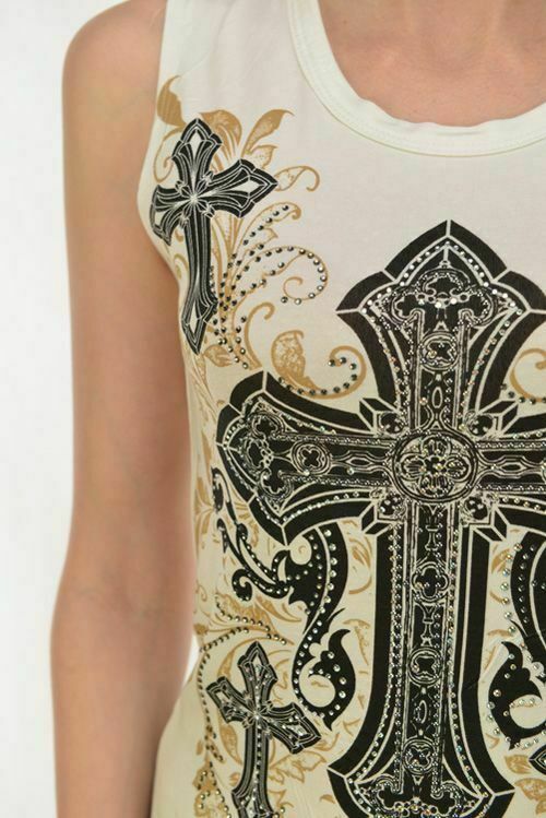 Gorgeous new top from Vocal Without tags Cross with Rhinestones design Hi Low Tunic Top or Dress Can be worn as a dress or a top,depending on how tall you are Length: 26" in front and 32" in back Fitted design and runs small. Welcome ( TO MY LISTING ) We Strive for Excellence and our #1 Goal is to make our Customers Happy! Please Remember all Clothing Items may fit differently depending on Brand, Fit, Use or Prior customization. We strongly urge our customer's to check measurements or ask for measurements first to guarantee proper fitting. Shipping discounts will be provided for multiple purchases - Please Contact me after Multiple Purchases for a updated invoice. * Payment* Payment is expected as with eBay's policiy. If there is no prior arrangement to extend payment expectancy a nonpayment claim will be filed with EBay. *Returns* Returns are accepted for all items within the U.S.A ( No Returns for International Customer's ) unless otherwise noted in the listing. All items returned must be in original condition and may not have any additional flaws. If an item was sold "New with Tags" it must have all tags present. Please "SEE MEASUREMENTS" first to ensure proper fitting of garment. *Shipping* We ship the majority of our Products within 3 business day. We do not ship over the weekend. We will send you an updated invoice for purchasing multiple items at once from us. We ship our clothing items USPS Advantage Mail or Priority Mail. Tracking information will be provided with all purchases within the United States of America. We hold the right to refuse shipment to particular countries or buyers.