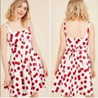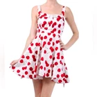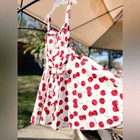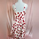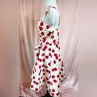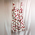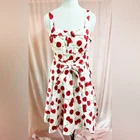 Ixia Cherry Retro Pin-Up Rockabilly Dress in great pre-owned condition. Full flirty skirt, sweetheart neck. Tie waist. Fit and flare. Super cute!! Zip closure Sweetheart neckline Fold over detailing on bustline Padded chest Sleeveless Fixed straps Tie waist back or front Full circle skirt Falls above knee Approximate measurements in pics