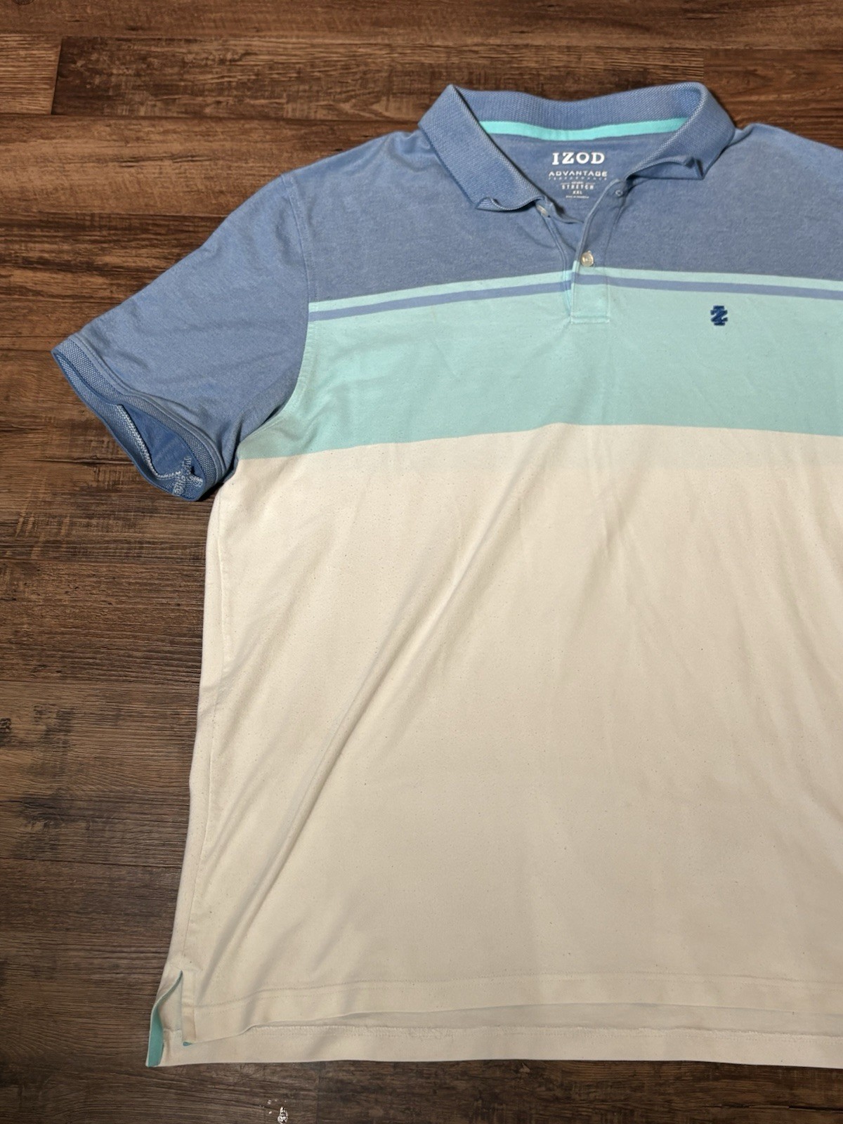The Izod Advantage Men's Golf Polo Short Sleeve Stretch Performance Shirt in size 2XL is a stylish and functional activewear piece perfect for casual or golfing occasions. Made from a comfortable and stretchy knit fabric blend of polyester and cotton, this polo shirt features a collared neckline with a button closure, short sleeves, and a striped pattern. With a regular fit and a chest size of 44 inches, this shirt is designed for comfort and performance on the golf course in the summer, fall, or spring seasons. The Izod brand is known for quality and durability, making this polo shirt a reliable choice for any wardrobe. Message with any questions fast shipping offers encouraged