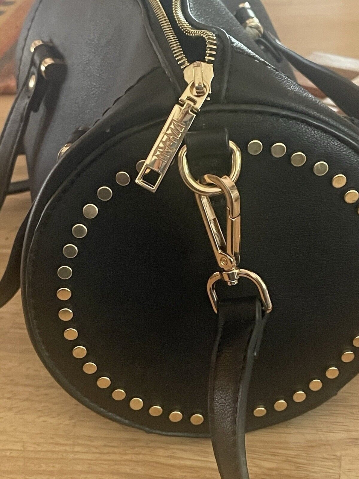 This Item is Pre owned Like new never used. Pictures are a part of the description and condition of the item. Black barrel shaped cross body studded end design vegan friendly