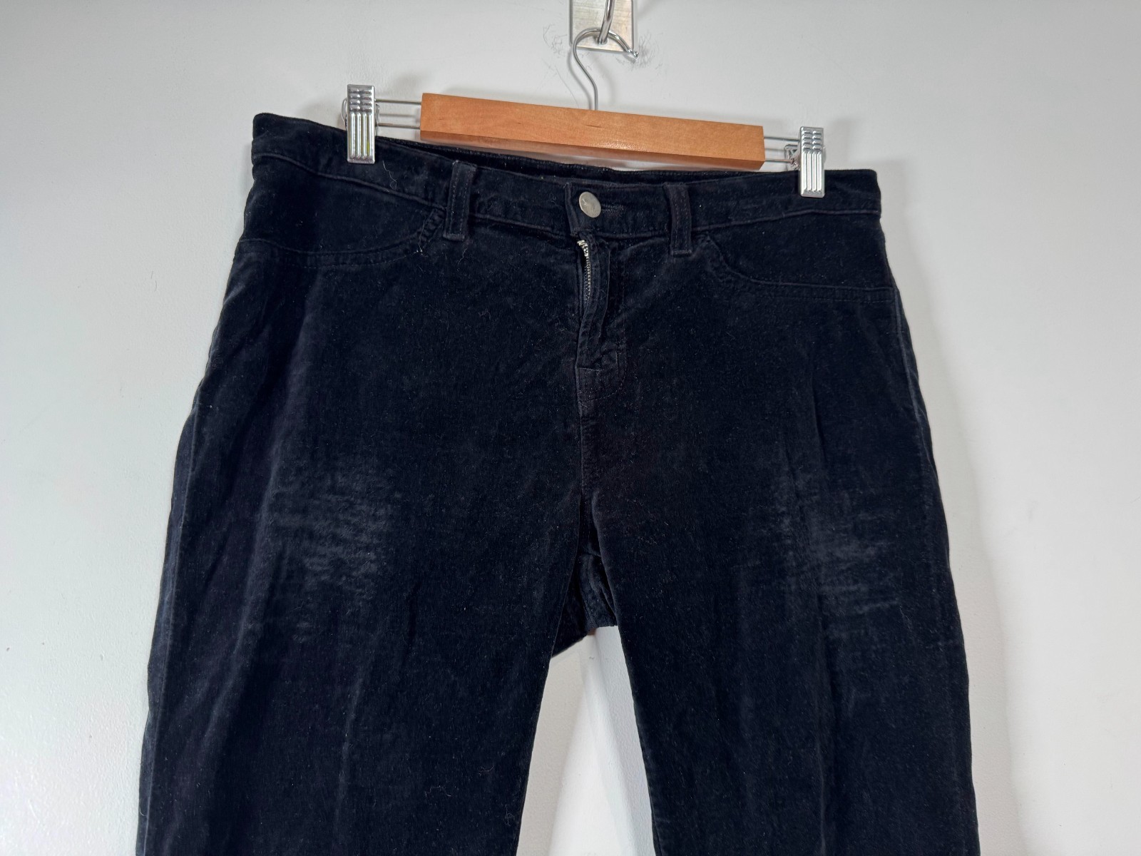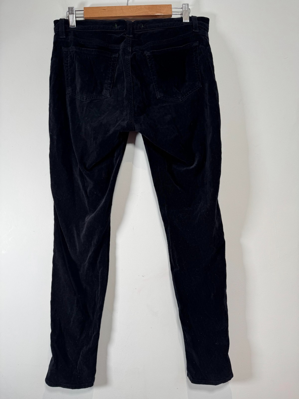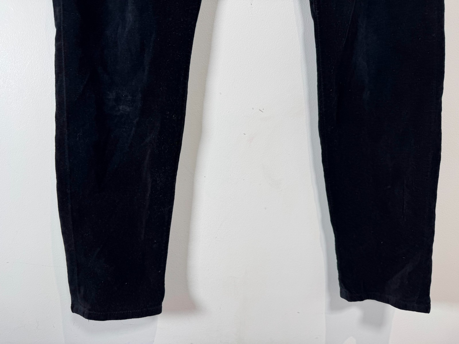 The J Brand Velvet Trousers in size W30 for women are a stylish addition to any wardrobe, perfect for a variety of occasions including parties or casual outings. Made from super soft cotton stretch fabric, these super skinny trousers feature a zip and button closure, with a slim fit and a 28-inch inside leg. The black colour and sleek design make them versatile for all seasons, while the breathable material ensures comfort and a flattering look. These jeggings from J Brand are a must-have for those who appreciate hipster or classic fashion with a touch of preppy style.