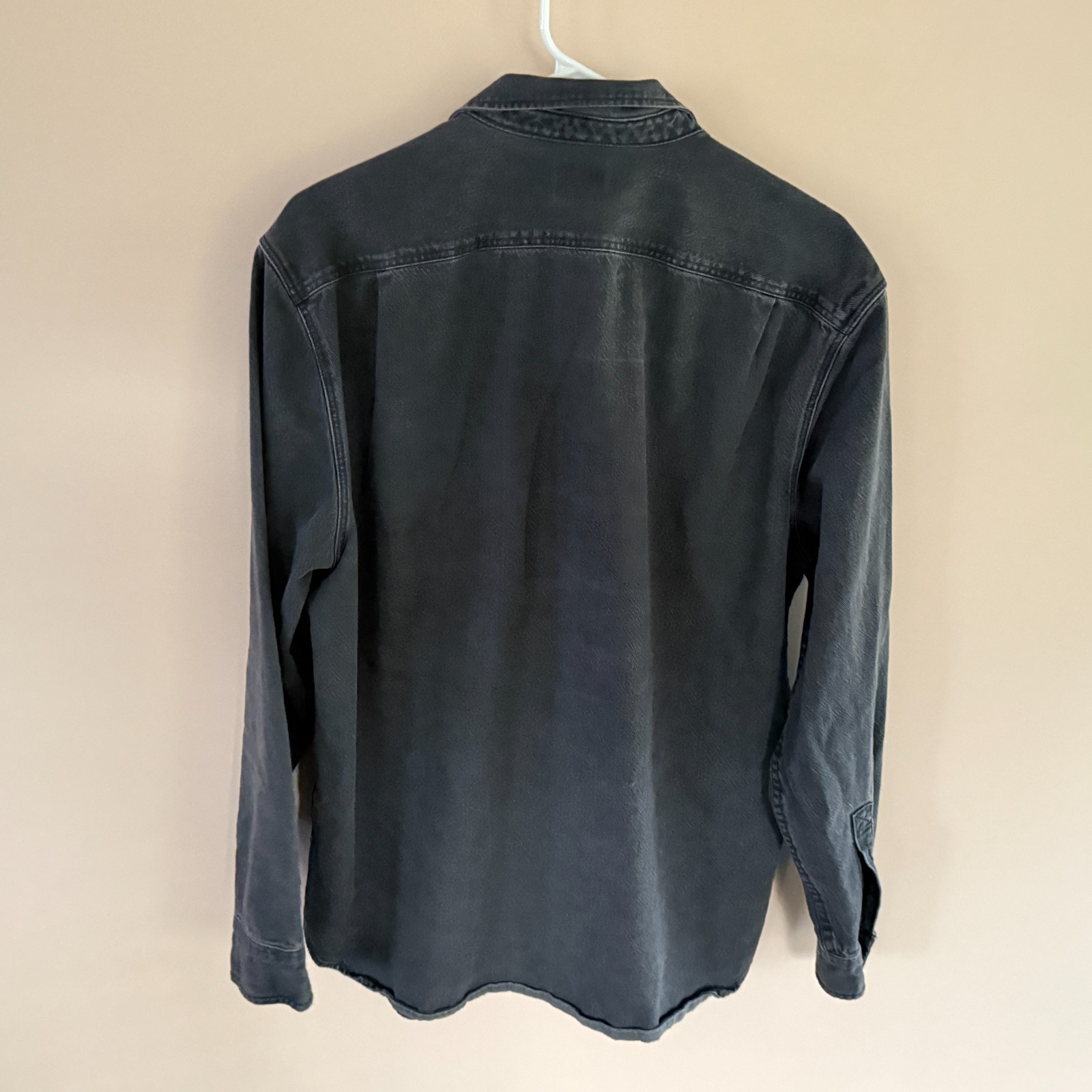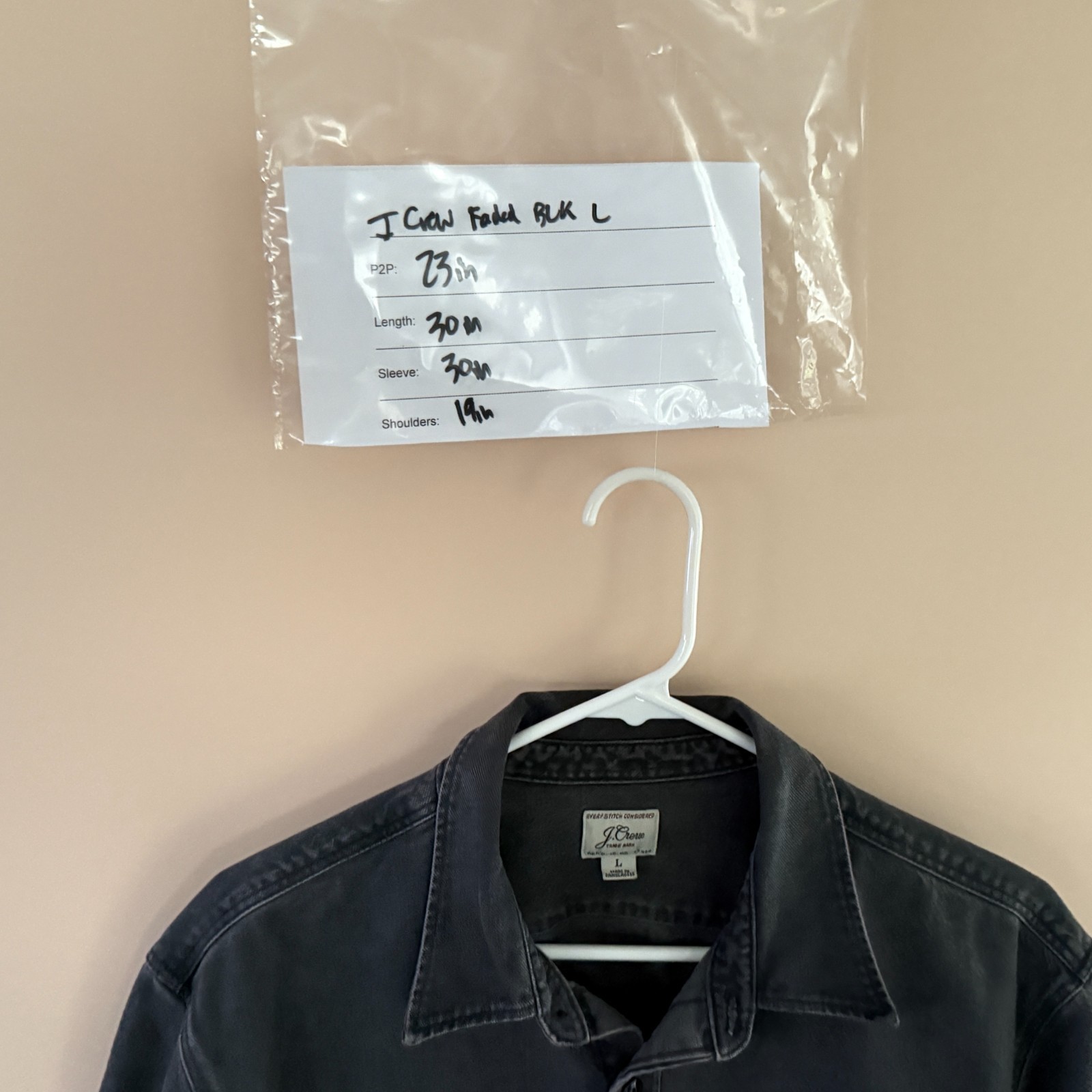 The J.CREW Canvas Heavy Button Down Work Shirt in Faded Black is a versatile and stylish addition to any man's wardrobe. Made from durable cotton material, this long sleeve button-up shirt features a solid black color with a collared neckline and button accents. Perfect for casual occasions, it offers a regular fit with a classic button-down style and convenient pockets. Whether you're working indoors or enjoying a casual day out, this shirt is machine washable and suitable for all seasons.