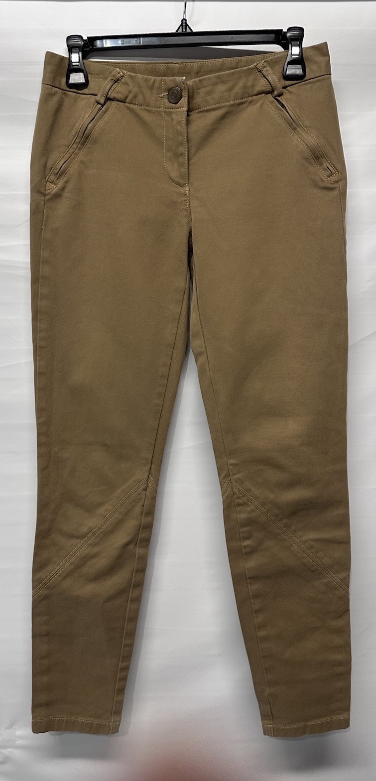 These J Crew Brown Tan Stretch Cotton Riding Style Pants in size 00 are a stylish addition to any woman's wardrobe. Made with a blend of spandex and cotton, they offer a comfortable and stretchy fit, perfect for all-day wear. The riding style and skinny leg give them a modern and flattering look, while the chino style adds a touch of classic sophistication. Perfect for casual outings or dressed up with a blazer for a more polished ensemble, these pants are versatile and chic.