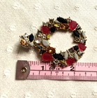 In a whimsical dance of colors, these J. Crew earrings capture the essence of a blooming garden or holiday wreath. Rhinestones and Lucite shapes form a wreath-like hoop, radiating charm and sophistication. The vibrant hues add a playful twist to any ensemble, making them a delightful treasure in any jewelry collection. • Dangle style earrings • Butterfly back closures • Multi-colored rhinestones and Lucite accents • Gold-tone base • Lightweight for comfortable wear Lovely Gold-tone backs and posts. One replaced rhinestone. Top to bottom = 2,5 inches, width = 2 inches.
