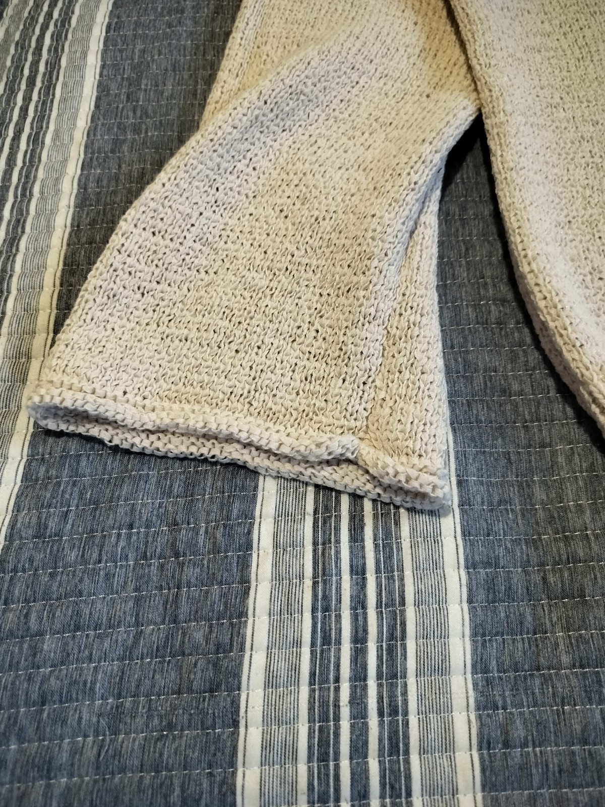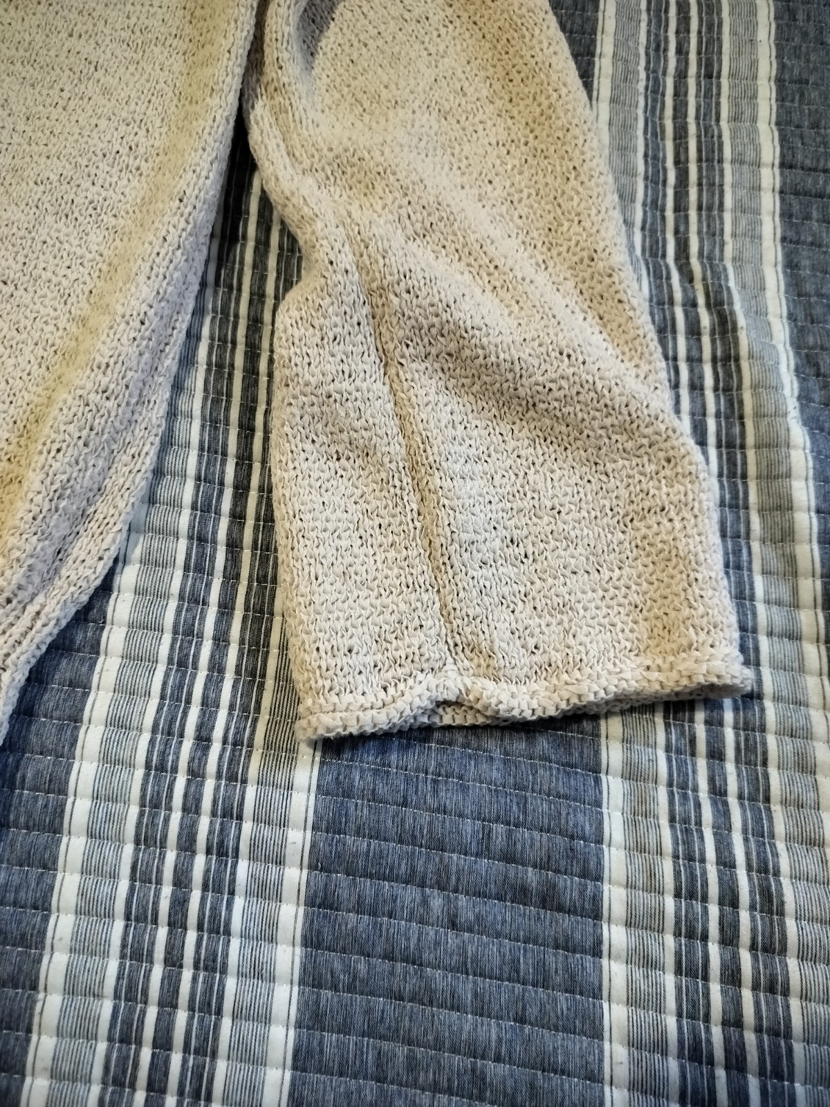 $ 12.68Lucky Bliss Sweater Womens Small Gray White Crochet Knit 3/4 Sleeve Raglan Boho
