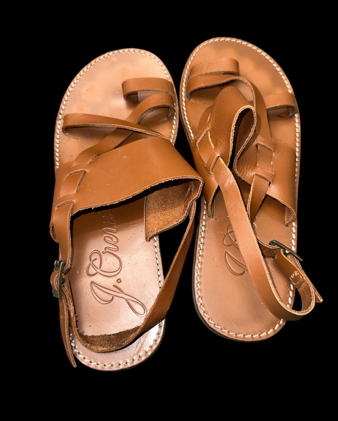 J. Crew Crisscross slingback sandals in brown leather Size 7 1/2 Woman’s Crafted in smooth leather with an adjustable slingback strap in the back. Vachetta leather upper. Leather lining. Regenerated leather outsole.