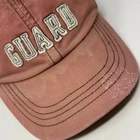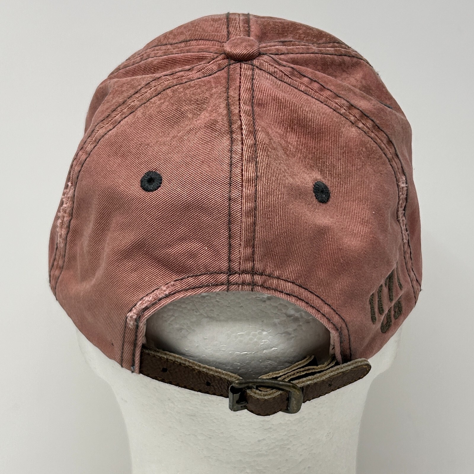 J Crew Guard Hat Baseball Cap 1171 US Distressed Bleach Spotted Tie Dye Six Panel Leather Strapback Pink Will be shipped in a box. CONDITION: Was red but had bleach staining so I bleach spotted tie dyed it so now it's not as noticeable and looks intentional and has staining on the sweatband. No other flaws noticed. Has been cleaned and sanitized. See photos.