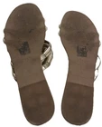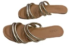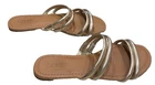 The J. Crew Factory Gold Metallic Flat Slide On Sandals in size 6 are a stylish and comfortable option for women. The slip-on design and flat heel make them easy to wear and perfect for all-day comfort. The gold color adds a touch of glam, while the synthetic upper material ensures durability. With a sleek and modern design, these sandals are perfect for adding a metallic touch to any outfit.