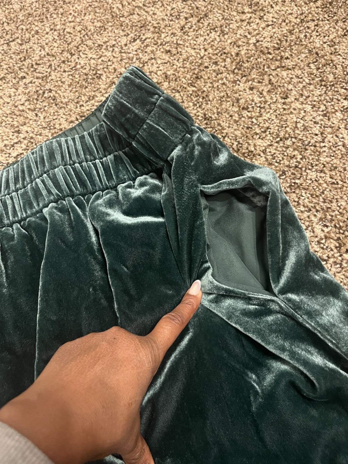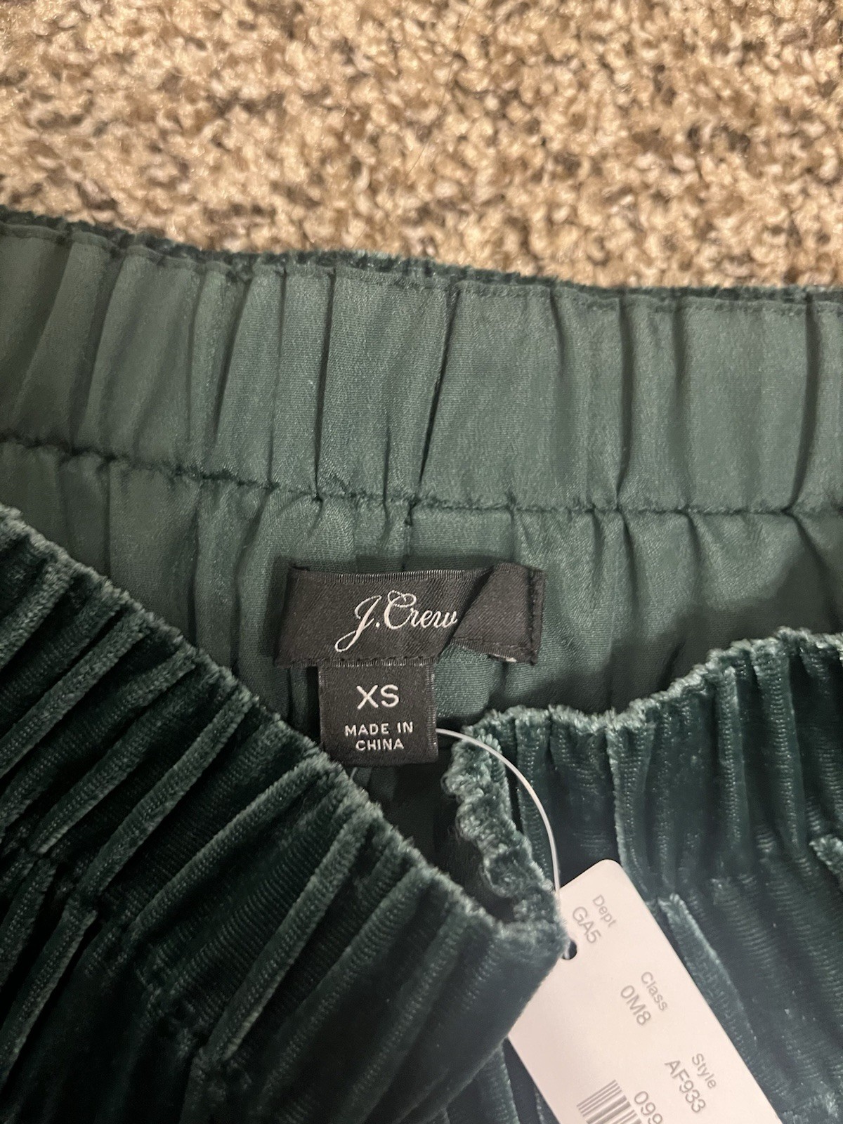 The J. Crew Green Velvet Pull On Side Slit Midi Skirt is a versatile and stylish piece perfect for various occasions such as parties, casual outings, or business meetings. This skirt features a pull-on closure, making it easy to wear and comfortable to move around in. It is crafted from luxurious velvet fabric in a beautiful green color, adding a touch of elegance to your outfit. With a midi length and straight & pencil style, this skirt is flattering and on-trend, making it a must-have for your holiday wardrobe.
