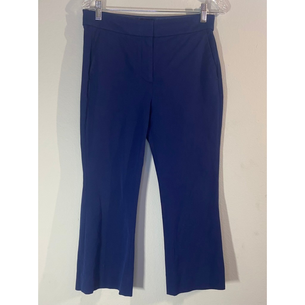 Sophisticated cropped trousers from J. Crew. These navy blue Kelsey pants feature a classic design with a comfortable mid-rise and a flattering slim fit that widens slightly at the ankle. Perfect for achieving a polished look, they are equipped with practical side pockets and faux back pockets. Ideal for business casual settings, weekend outings, or a chic travel outfit. Style: Dress Pants Department: Women Material: Cotton Blend, Viscose, Elastane Leg Style: Straight Features: Pockets, Stretch Type: Pants Fabric Type: Ponte Closure: Zip, Button Pattern: Solid Accents: Button Theme: Preppy, School, Classic Occasion: Business, Casual, Workwear, Travel Fast Shipping Offers Accepted