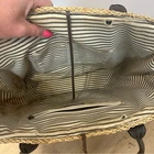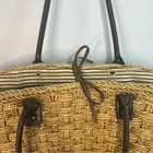 This stylish tote bag features a classic woven design in tan with black leather handles, offering a chic and practical accessory for everyday use. Its medium to large size makes it perfect for carrying essentials, while the basket-like silhouette adds a touch of rustic charm. Ideal for casual outings or beach days, this tote combines functionality with timeless style.