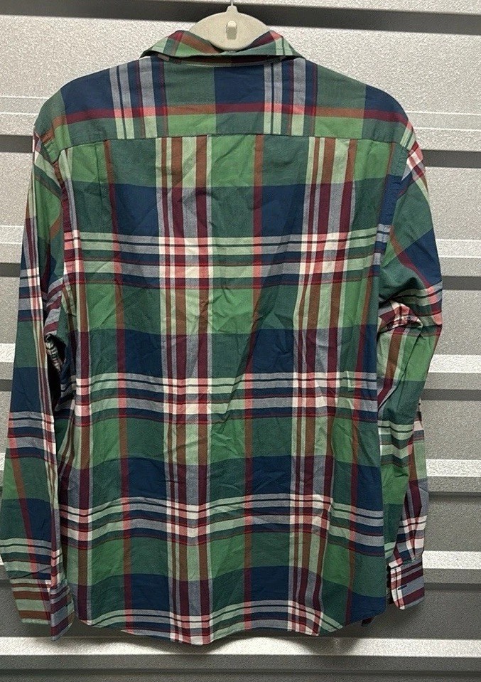J Crew Mens Summer Plaid Shirt Tailored Fit Size Large Button Down Preppy Office Great pre owned condition Size large Pit to pit: 23 inches Length: 29 inches