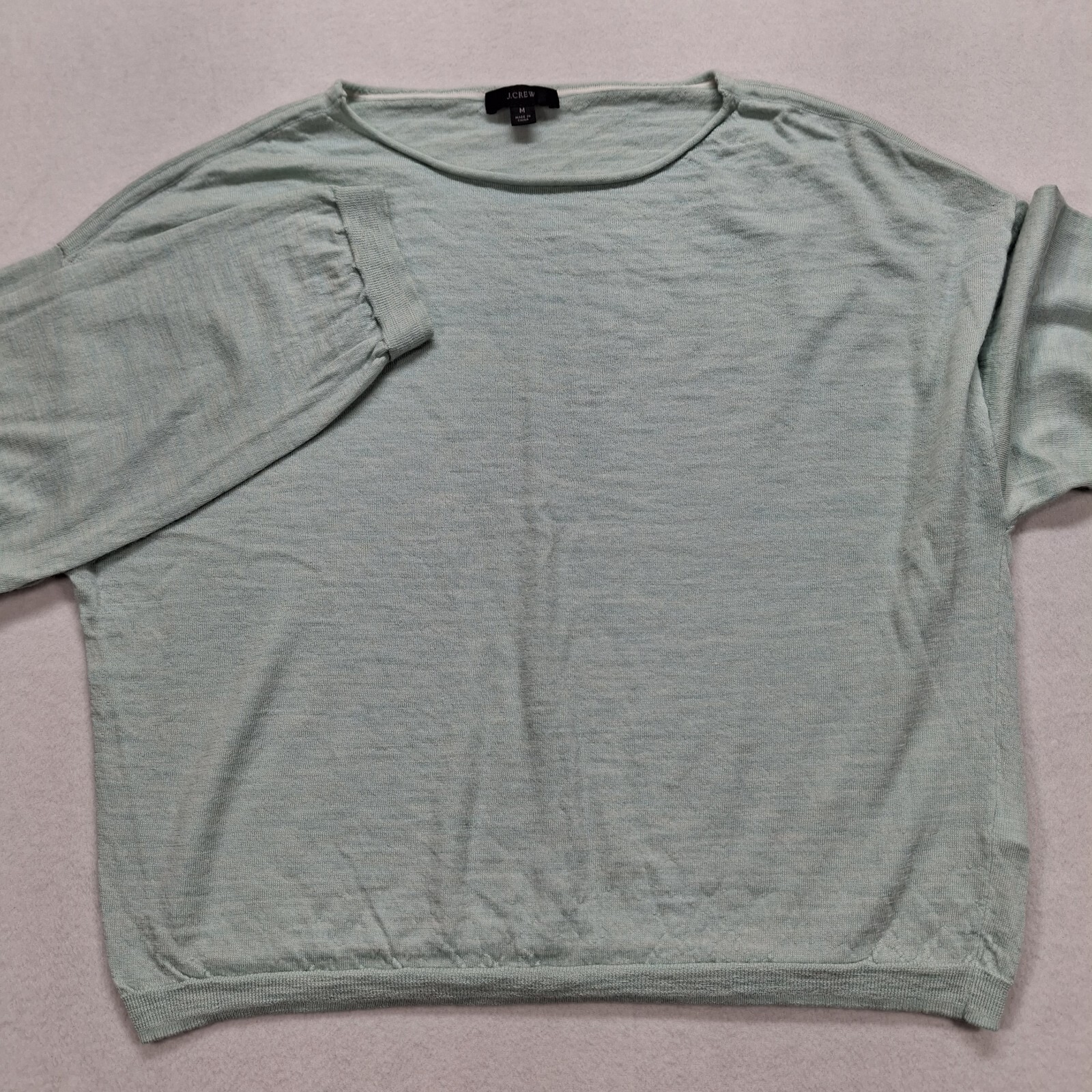 J Crew Merino Wool Sweater Women Medium Mint Green Rollneck Soft Boxy pit to pit 21" shoulder to hem 20"