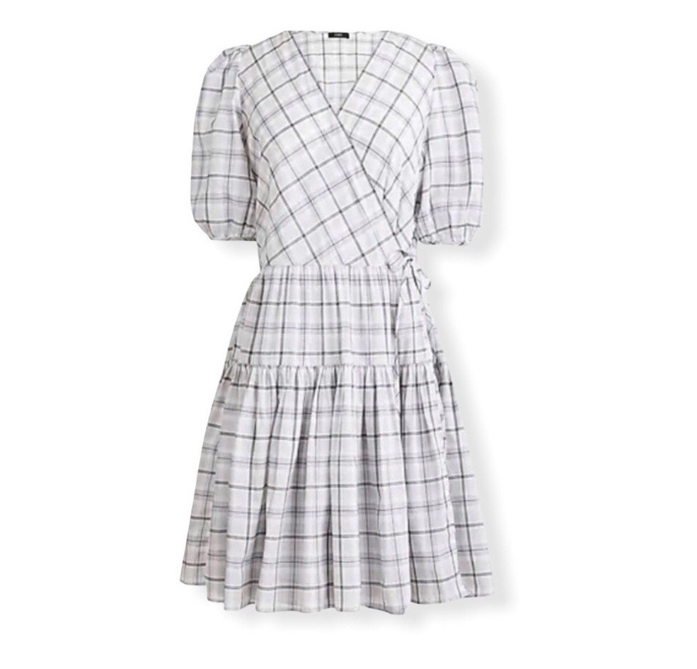 J.Crew Puff-sleeve cotton voile wrap dress in oyster plaid, L, GRAY, NWT. New with tags J. Crew cotton wrap dress in a white, gray and taupe plaid. Very light and airy dress perfect for a summer party, a daytime wedding, church function or work. Cute plaid print makes this versatile from day to night. Great dress for “off to college”. Has a separate white cotton adjustable strap slip and the dress has bra stays to keep the slip and bra in place. Lightweight dress with a comfy relaxed fit. Size L Smoke free home Fits true to size Pit to pit 21” Waist 18” Length 39” Bundle discounts