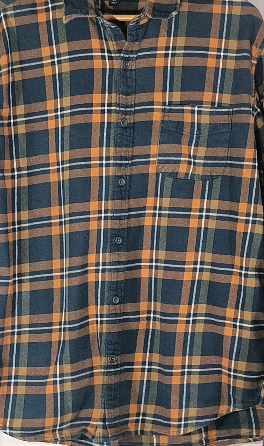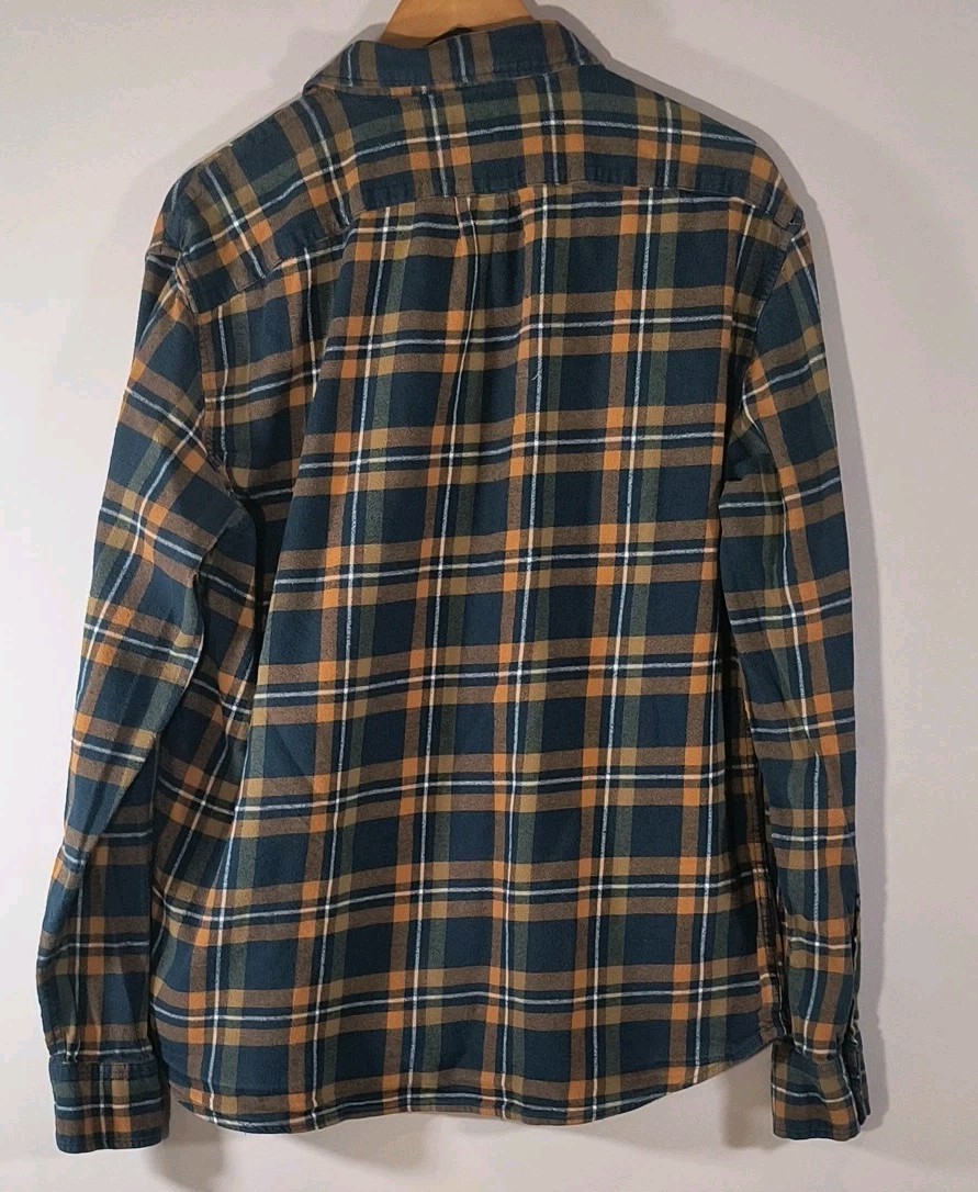 The J.Crew Plaid Flannel Shirt in Men's XL size features a slim fit design with long sleeves and a button-up closure. Made from cotton flannel in a classic orange navy plaid pattern, this shirt is perfect for adding a touch of style to any casual outfit. The button-down collar and slimming features make it a versatile and fashionable choice for men's wardrobe.